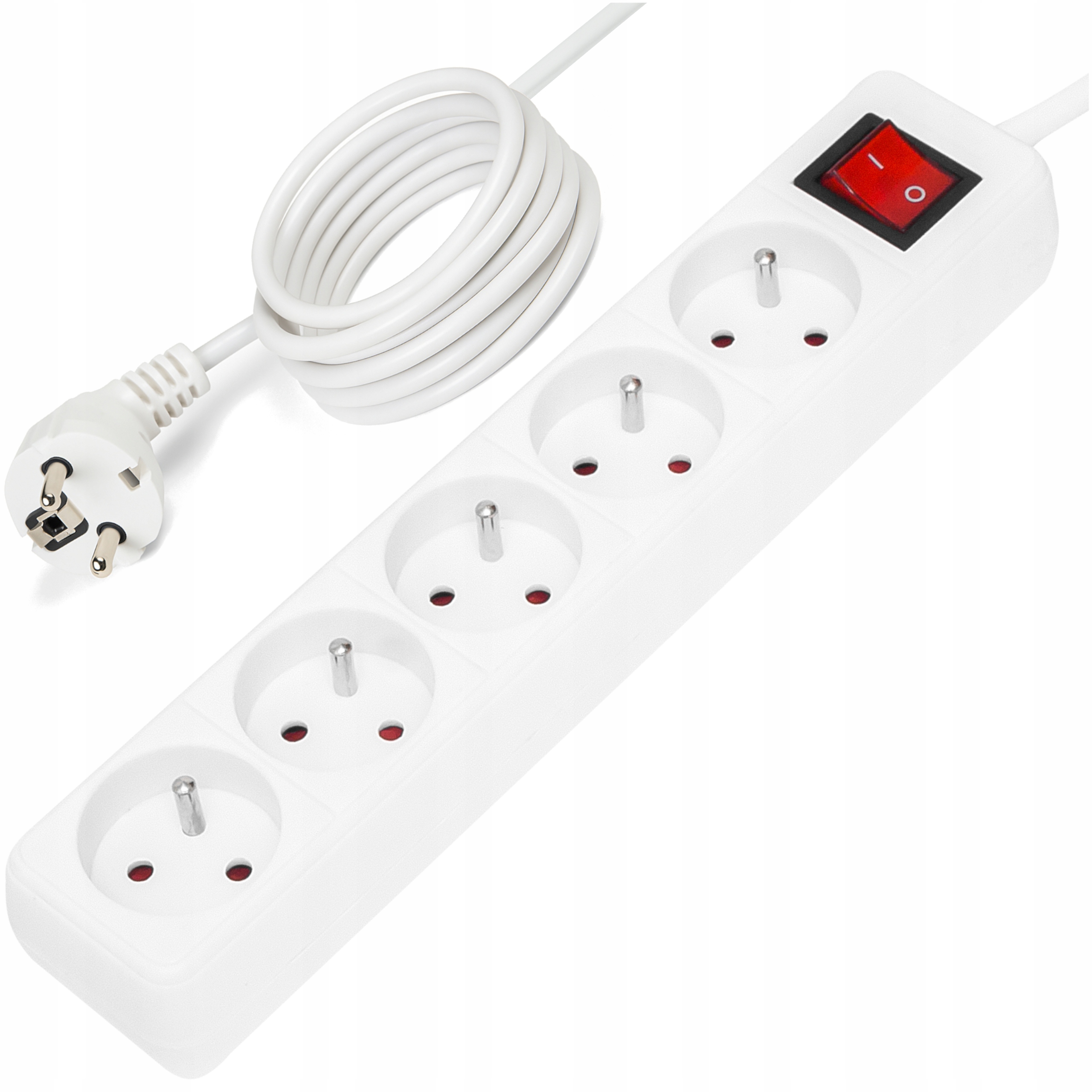 УДЛИНИТЕЛЬНЫЙ КАБЕЛЬ ПИТАНИЯ ВЫКЛЮЧАТЕЛЬ 5 м 5 РОЗЕТОК