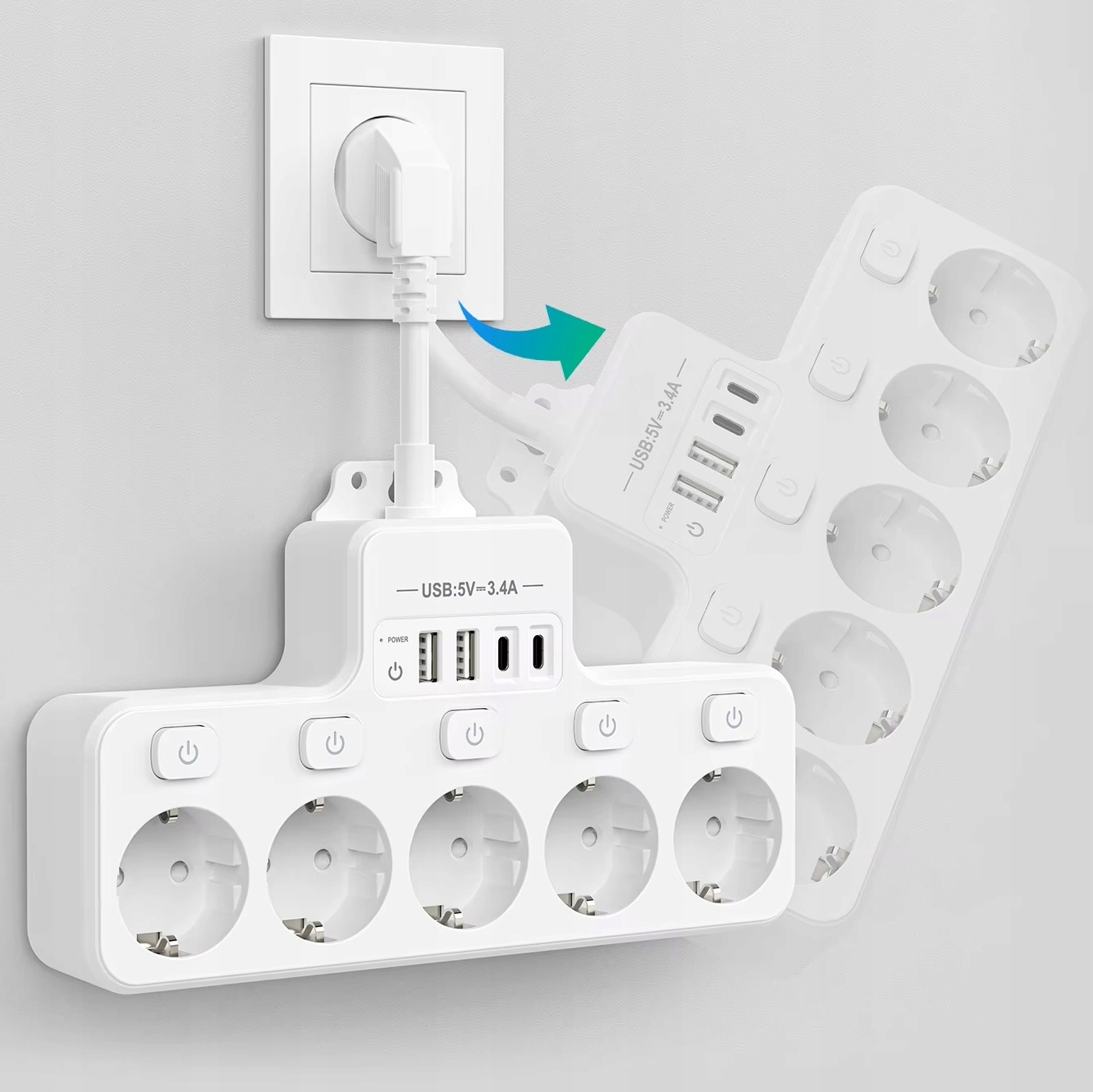 Удлинительный кабель удлинителя с переключателем, 5 розеток, 4 зарядных устройства USB