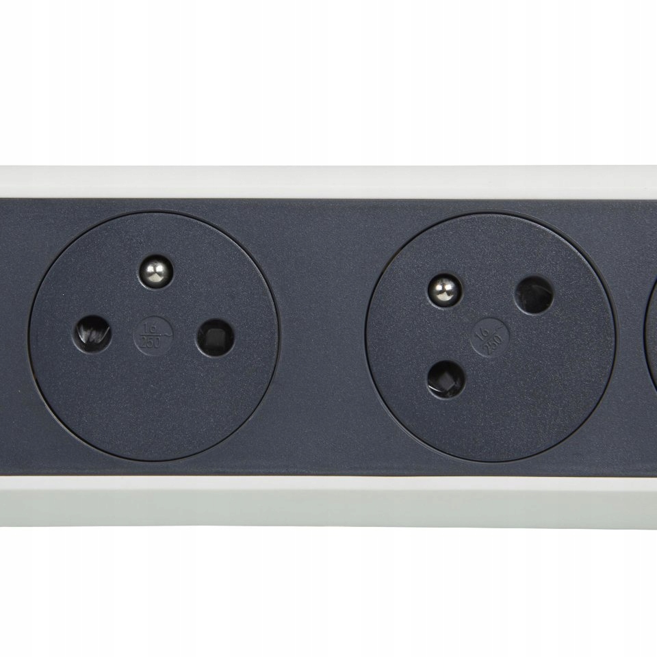 - 6 «плоских» 2P+Z розетки (5 расположены под углом 45° и 1 отодвинута и установлена под углом 90° для подключения, например, источника питания без блокировки соседней розетки)
