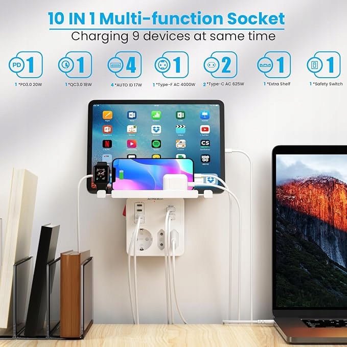 Вы ищете функциональный и современный удлинитель, который не только обеспечит вам доступ ко множеству розеток, но и позволит быстро заряжать ваши устройства? Предлагаемый продукт – идеальное решение, сочетающее в себе комфорт, эффективность и современный дизайн! Идеально подходит для дома или офиса — организуйте свое пространство и мгновенно заряжайте свои устройства! Благодаря современным технологиям наша розетка обеспечивает быструю зарядку таких устройств, как смартфон или планшет. 3 сетевых розетки и 6 USB-портов позволяют заряжать и использовать множество устройств одновременно. Переключатель ON/OFF, расположенный на боковой стороне устройства, позволяет включать и выключать полоску, не выдергивая вилку.