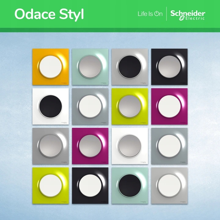 Серия Odace Schneider Electric была разработана интересным образом с учетом эстетики и комфорта в вашем доме/квартире. Секрет ассортимента Odace — круглая форма разъемов и розеток, а также цвета, позволяющие сочетать разные стили и предпочтения. Уникальность серии подтверждается, среди прочего, сдержанными круглыми разъемами и разъемами, закругленными углами разъемов, качественными материалами и тщательной обработкой. Каждый найдет что-то для себя – как тот, кто умело выбирает цвета и ищет современный дизайн, так и тот, кто ценит простоту дизайна и удобство использования.