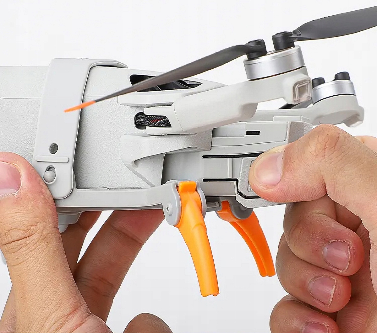 Подстройка под конструкцию дрона: Структура подставки точно соответствует конструкции дрона DJI Mini 4 Pro. Это обеспечивает легкий доступ к аккумулятору и гарантирует, что линзы сохранят полное поле зрения. Ножки имеют несколько ступенчатую регулировку и стопор, который не позволяет им полностью выдвигаться наружу, и при этом они складываются внутрь, что облегчает транспортировку дрона.