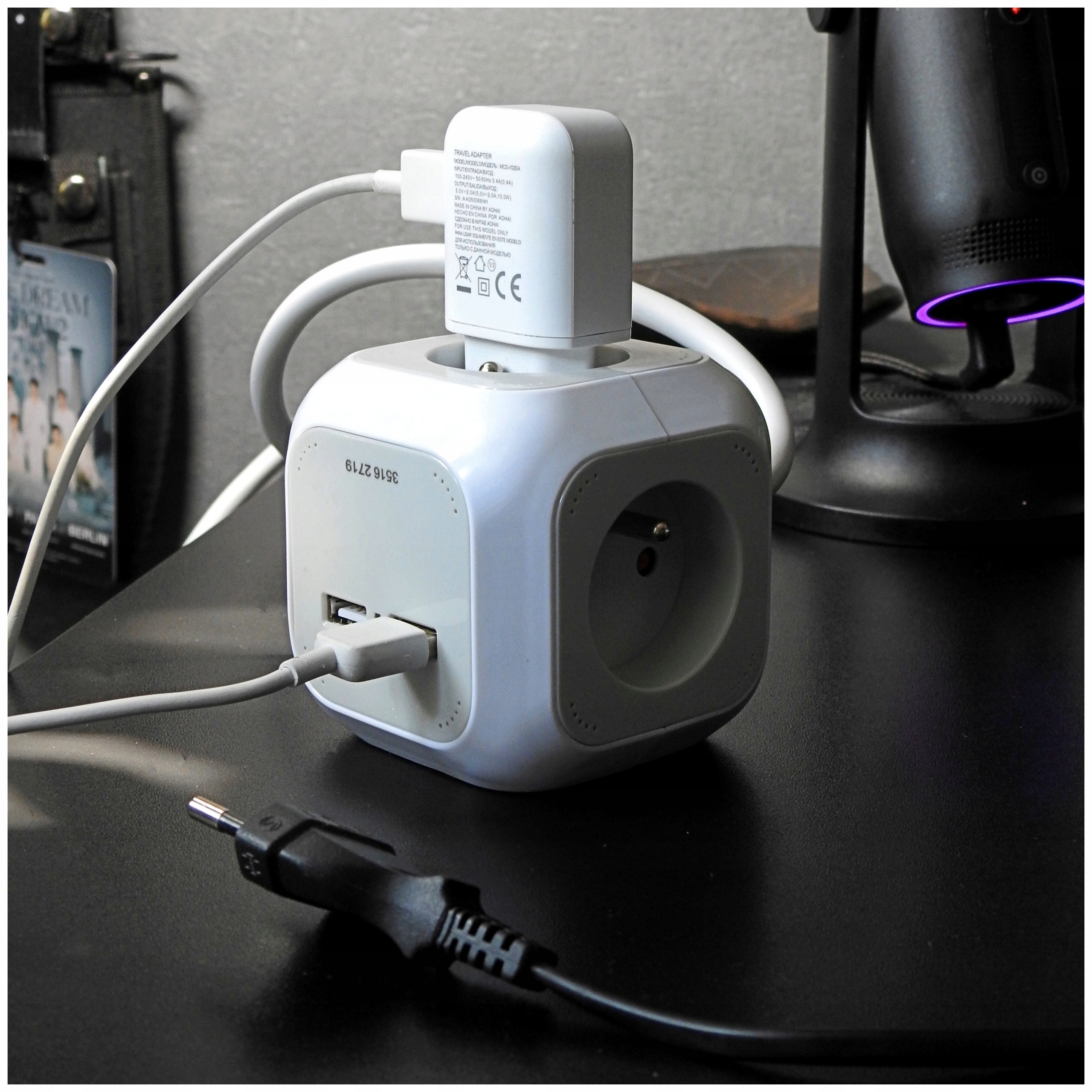 Подовжувач шнура живлення, кабель 4Gn, 1,4 м, 2 USB, сертифікат CE, комплект із 2 шт.