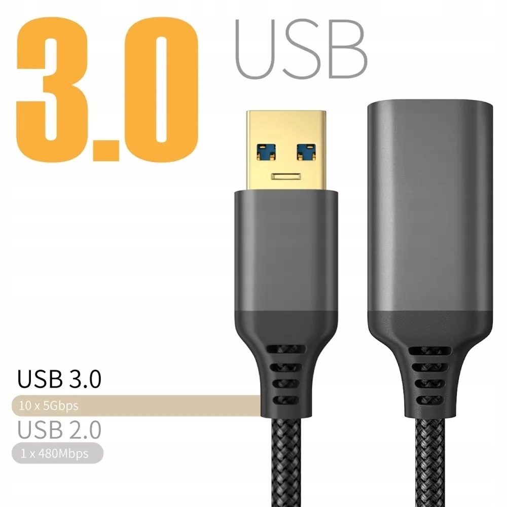 Этот кабель позволяет передавать данные на скорости до 5 Гбит/с. Он выполнен по технологии USB 3.0 и имеет разъемы USB Type A (штекер) и USB Type A (гнездо). Он обратно совместим с технологией USB 2.0, поэтому его можно подключать к более старым устройствам, оснащенным указанным выше устройством. разъем.