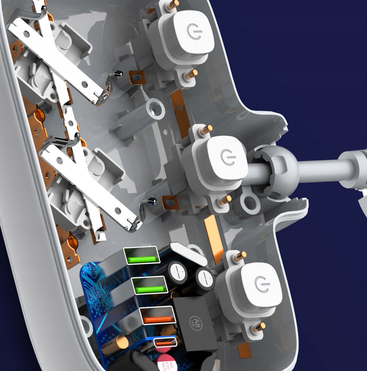 LDNIO SE2435 - надежный удлинитель, благодаря которому мы можем подключить 6 устройств одновременно. Два устройства подключаем к стандартным вилкам питания, еще четыре — к USB-портам, имеющим, среди прочего, Стандарт быстрой зарядки QC3.0 и PD20W!