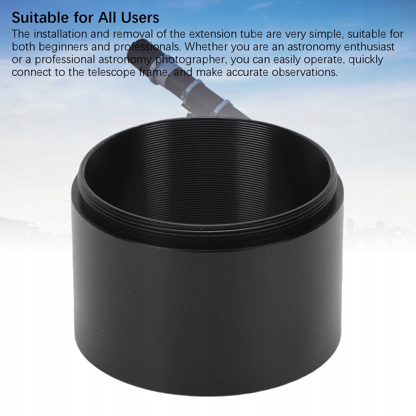 1. Конструкция резьбы M48: удлинительная трубка астрономического телескопа M48x0,75, внешний диаметр 2 дюйма, обеспечивает совместимость с большинством телескопов, камер и астрономических устройств, благодаря cz ее можно легко адаптировать для ежедневных наблюдений или астрономической фотографии.