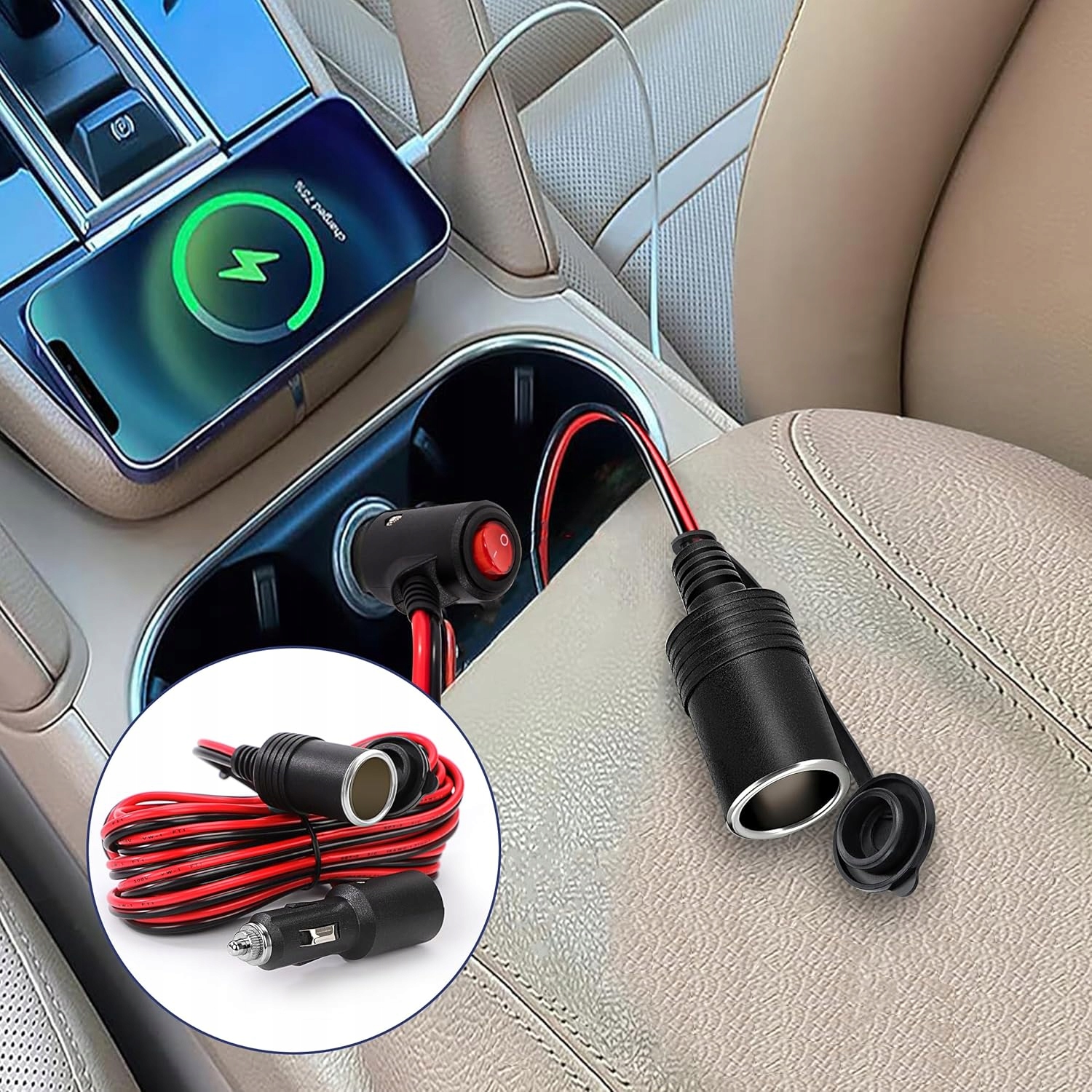 Характеристики: вилка автомобильного прикуривателя 12 В с удлинителем и выключателем, длина кабеля 16 AWG 5 м, легко расширить электрические розетки в автомобиле.