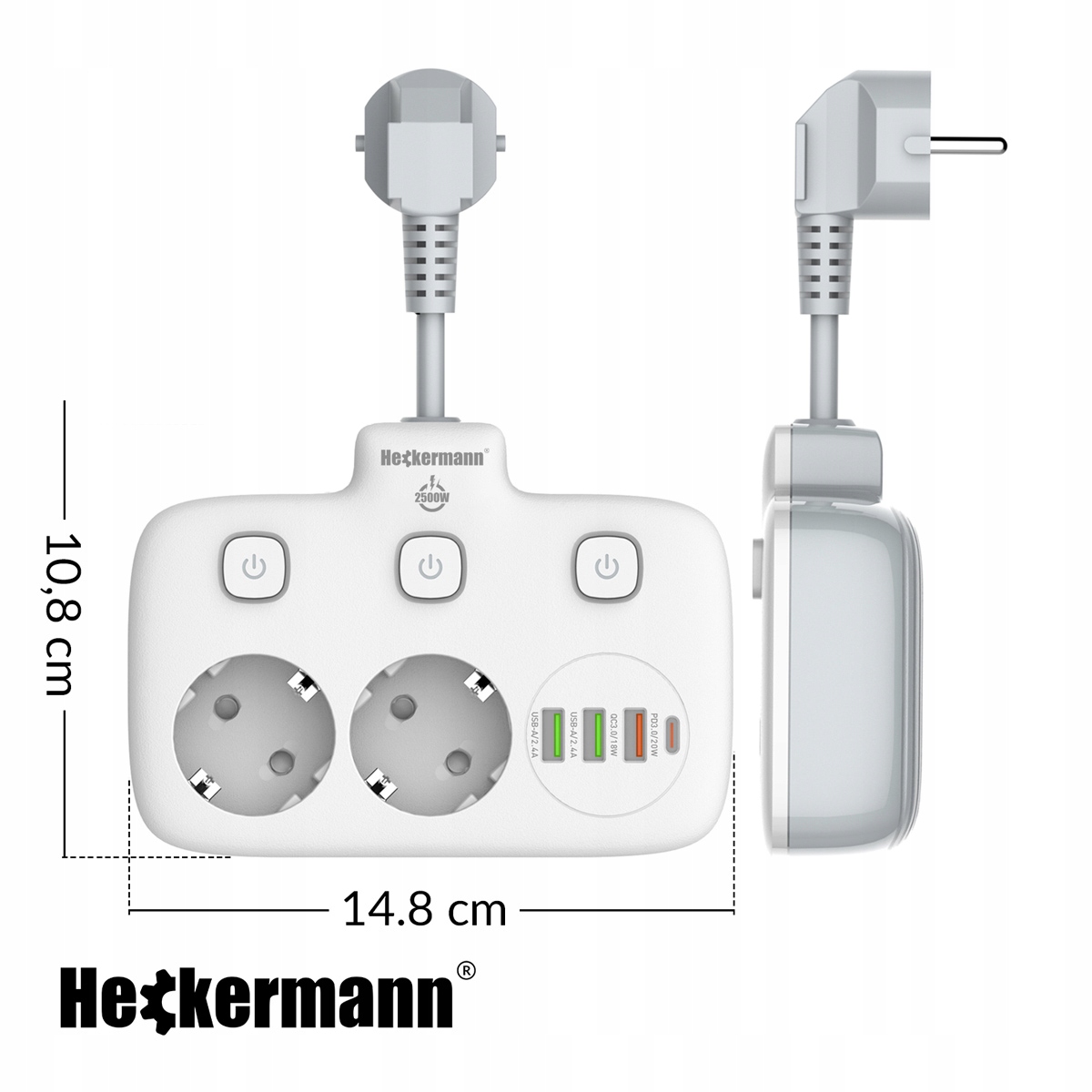 ⭐ Удлинитель имеет две стандартные электрические розетки, совместимые с европейскими вилками, две стандартные USB-разъемы, одну USB с функцией быстрой зарядки (Quick Charge 3.0) и одну USB с функцией быстрой зарядки. b>Порт USB-C PD 20 Вт.