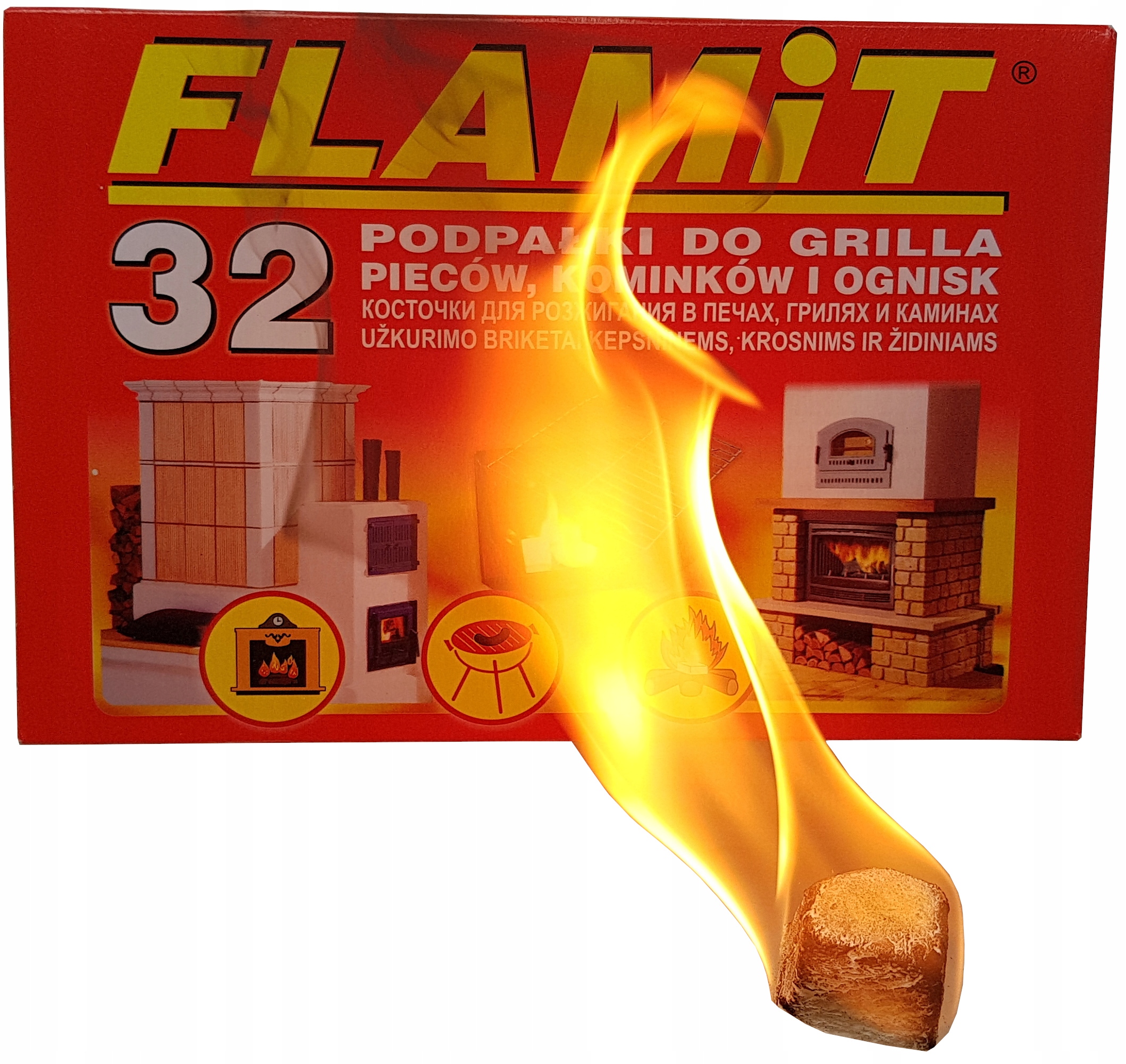 Белая растопка FLAMiT 32 используется для розжига костров в грилях, печах центрального отопления и каминах.