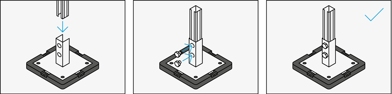 PODPORA DACHOWA Z MATĄ EPDM 300X300 MM PROFILU 30X30 MM