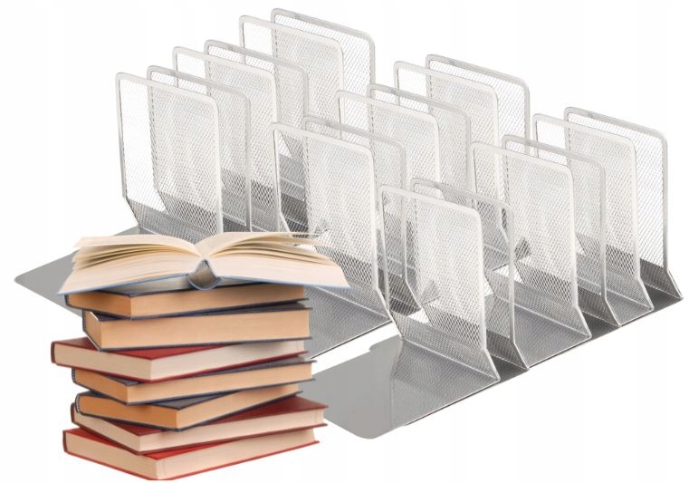 Podpórki do książek Net zastawki metalowe z siatki podkładki - srebrne + 1