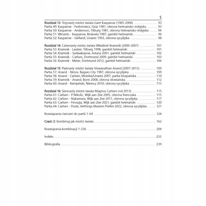 В последней книге издательства Caissa Ежи Кониковский на основе 64 избранных партий, сыгранных в период с 1862 по 2022 год, представил очертание стиля игры в сфере тактического боя каждого чемпиона. Каждому из Чемпионов он посвятил главу, содержащую анализ 4-х сыгранных им игр. Чтобы разнообразить чтение и повысить ценность тренировки - каждая из этих игр прерывается в самый волнующий и решающий для результата момент, и читатель остается в стороне. попросили проверить ход его мыслей и сравнить его с решением, предложенным чемпионами. Благодаря такому решению даже игроки, не привыкшие работать самостоятельно при изучении чужих партий, вынуждены отказаться от подхода пассивного читателя.