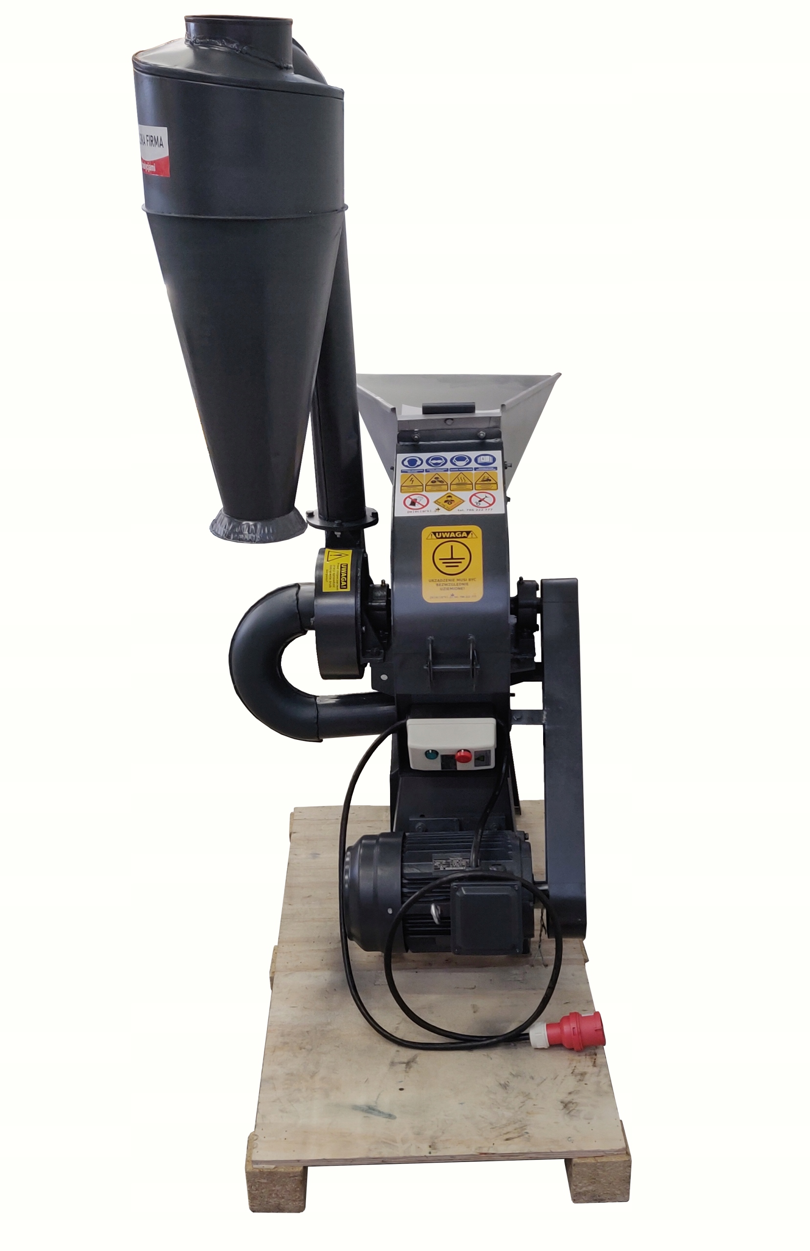 Мельница применяется при производстве пеллет, поскольку после измельчения материал получает идеальную фракцию для гранулирования. Кроме того, он действует как фильтр, который задерживает все нежелательные элементы, содержащиеся в материале, которые могут повредить пеллетогенератор, например, металлические элементы, твердые сучки, камни. Молотковая мельница мощностью 4 кВт достигает производительности до 300 кг/ч в зависимости от используемого сита и влажности входного материала. Устройство предназначено для работы с мелкими древесными отходами, ветками и панелями фракцией не более 20 мм.