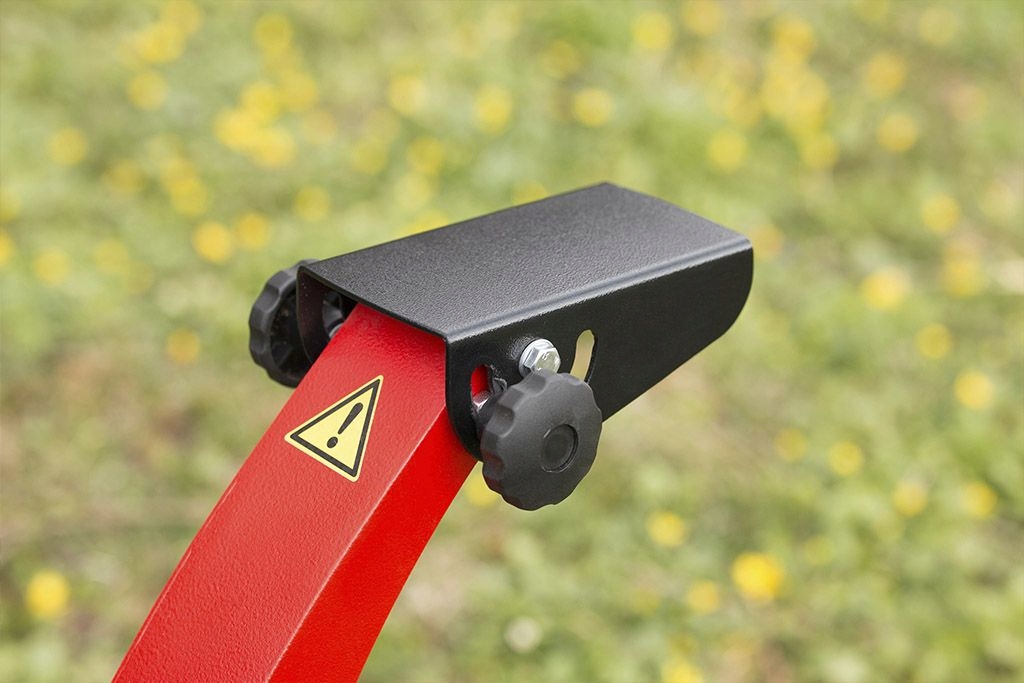 В измельчителе MB-60BD была установлена выходная воронка (так называемая GąSIOR), что позволило изменять направление отказа от фундаментов. Это возможно благодаря регулируемой крыше, которая может быть наклонена вверх или вниз, что изменяет угол выброса. Чтобы отрегулировать крышу, никаких дополнительных инструментов не требуется; Все, что вам нужно сделать, это ослабить две ручки вручную и установить соответствующий угол. Совет позволяет выбросить чипсы на высоту до 760 мм, что удобно при загрузке в садовые коляски, контейнеры или другие резервуары
