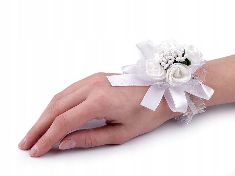 Браслет на руку с розами предназначен для свидетелей и подружек невесты. Изготовлен из эластичного кружева, идеально сидит на руке. Розы имеют небольшие тычинки посередине и декорированы органзой и сложенной лентой.