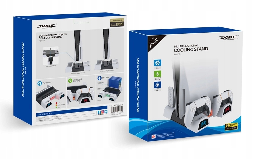 Охлаждающая подставка для PlayStation 5 с док-станцией на 2 планшета + подставка на 10 игр и держатель для пульта DOBE, модель TP5-05100.