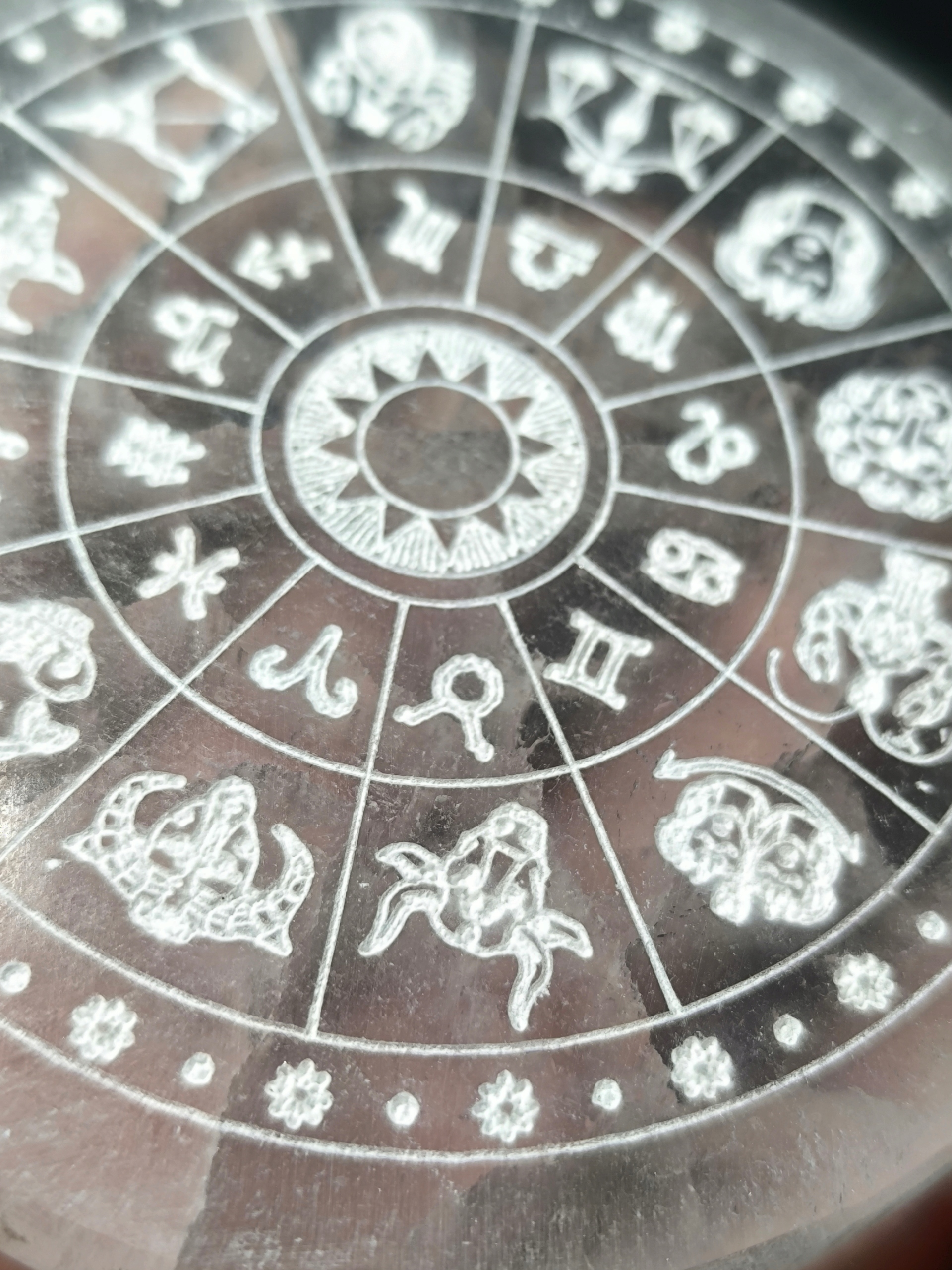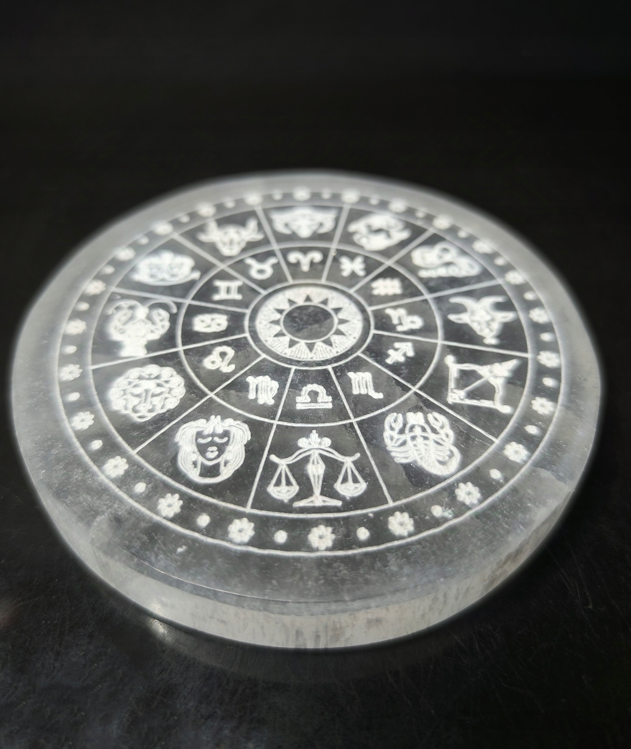 Podstawka/płytka selenit ZNAKI ZODIAKU naturalny kamień księżycowy Maroko