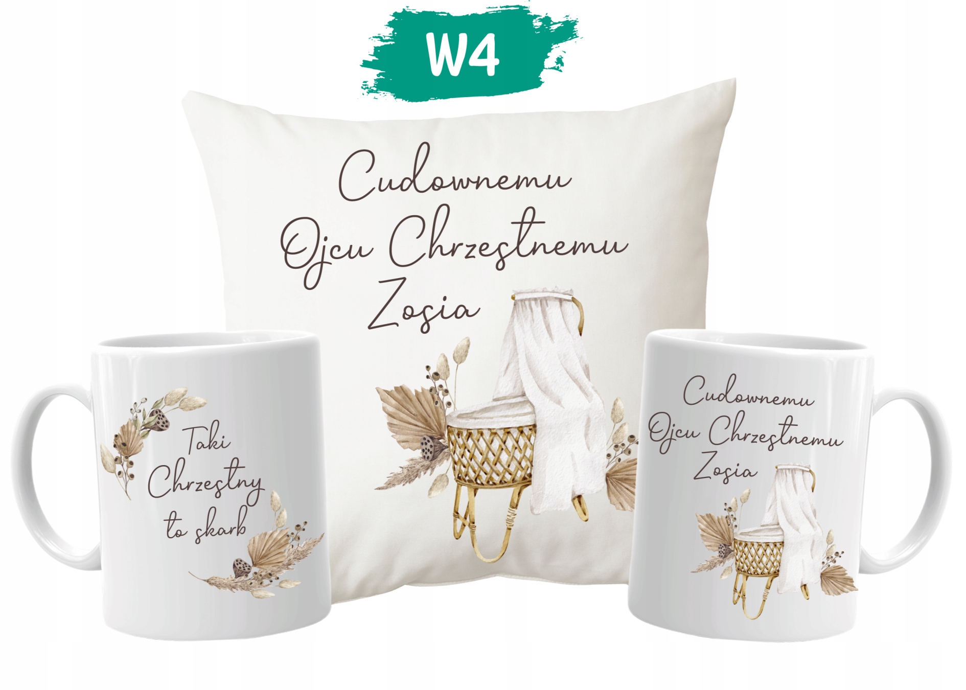 Подарочный набор «Кружка + подушка» — приятный и практичный подарок в знак благодарности крестным родителям. На выбор доступны 4 разных узора, все в стиле бохо (2 узора для крестной и 2 для крестного).