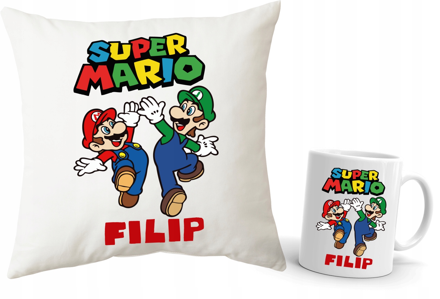 ПОДАРОЧНЫЙ НАБОР с Супер Марио и именем: КРУЖКА + ПОДУШКА с наполнителем