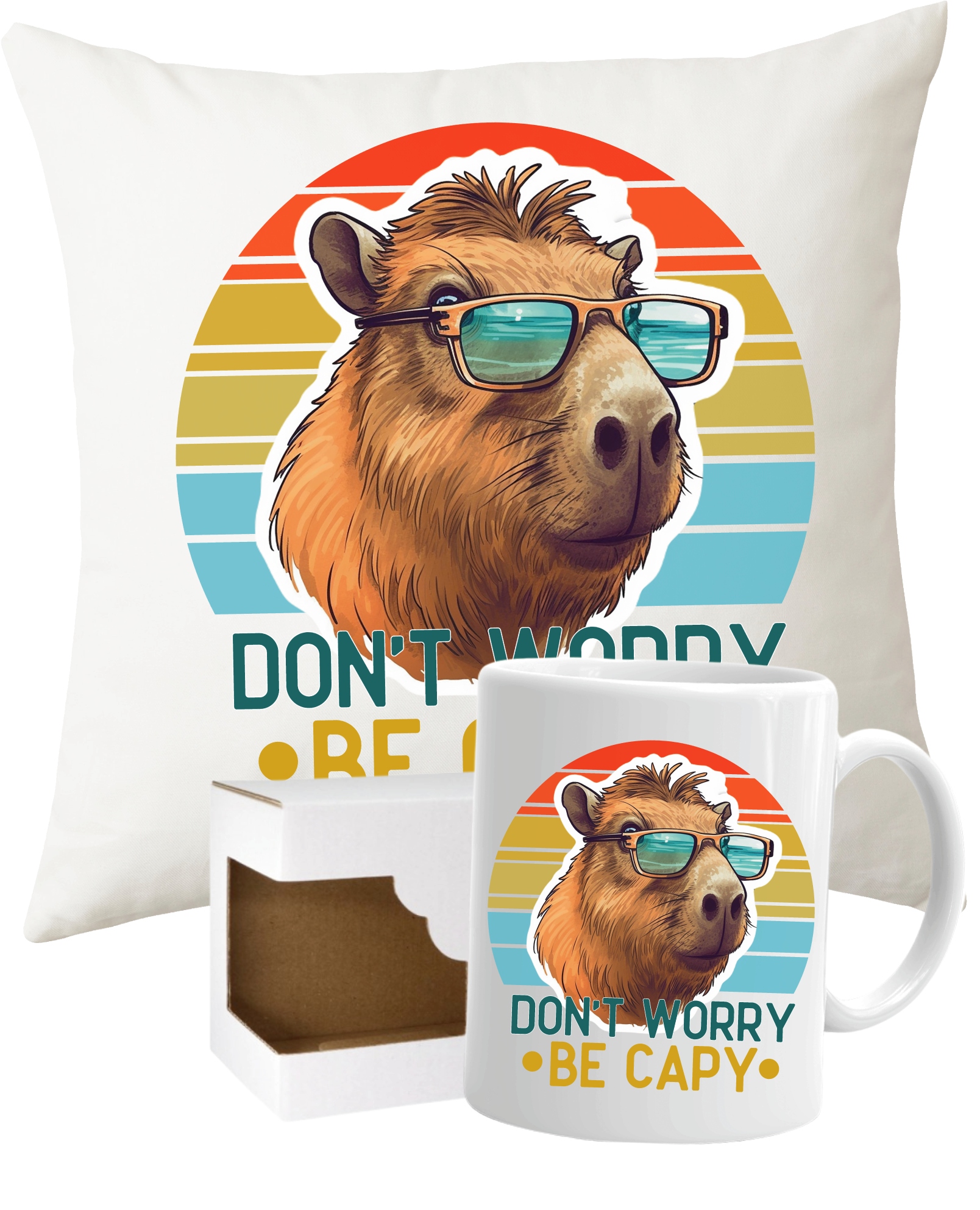 Подушка + подарочная кружка Don't Worry Be Capy Capybara