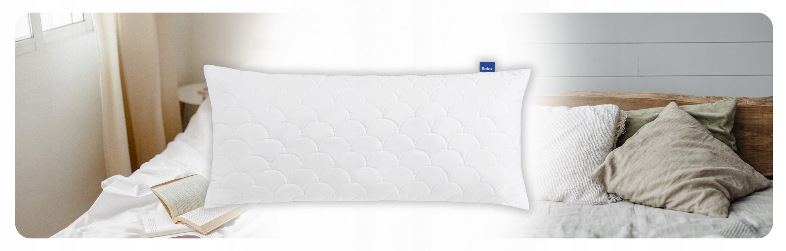 - Компактная стеганая подушка от ROTEX размерами 40х105 см — практичное и гигиеничное решение как для домашнего использования, так и для путешествий.