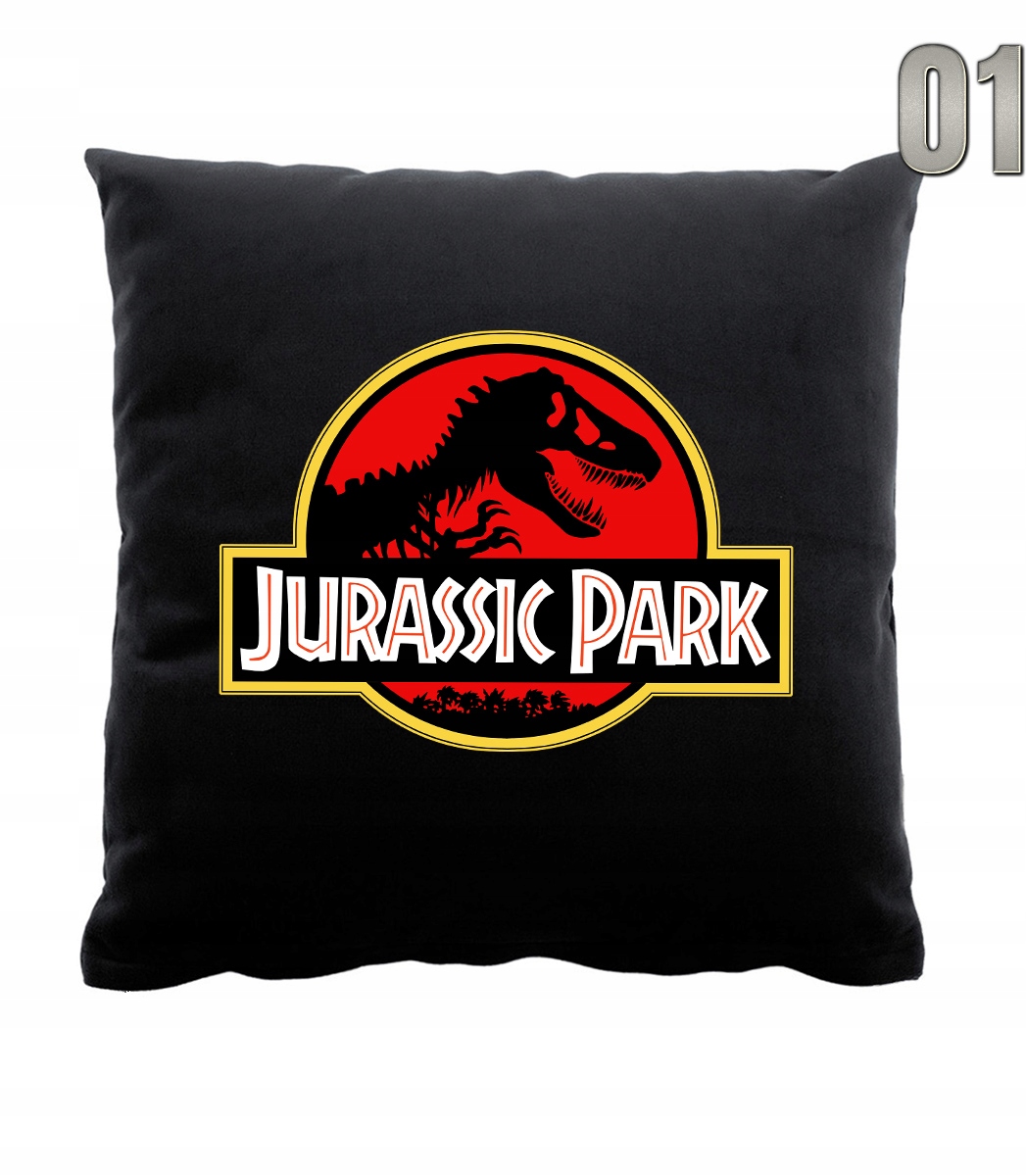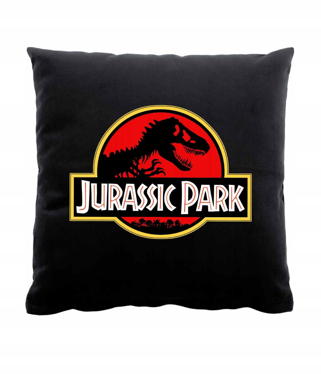Подушка черная 40х40 с принтом - ПАРК ЮРА + возможность нанесения имени или другого текста на товар, включенный в стоимость.