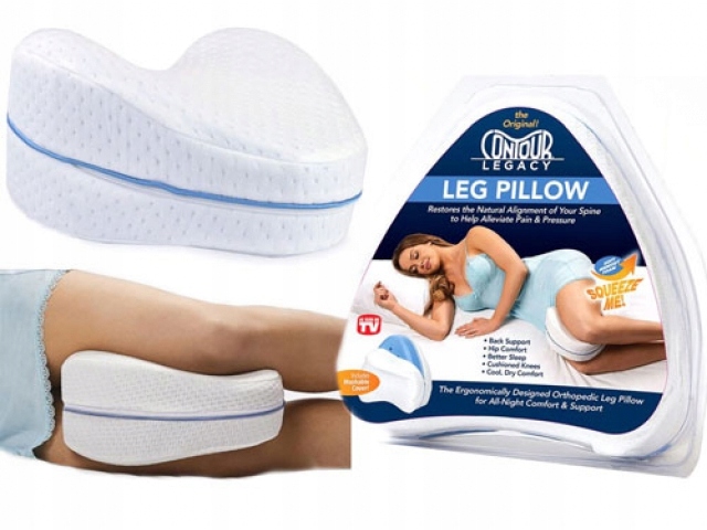 Подушка-разделитель между ногами и коленями поддерживает правильное положение позвоночника во время сна.