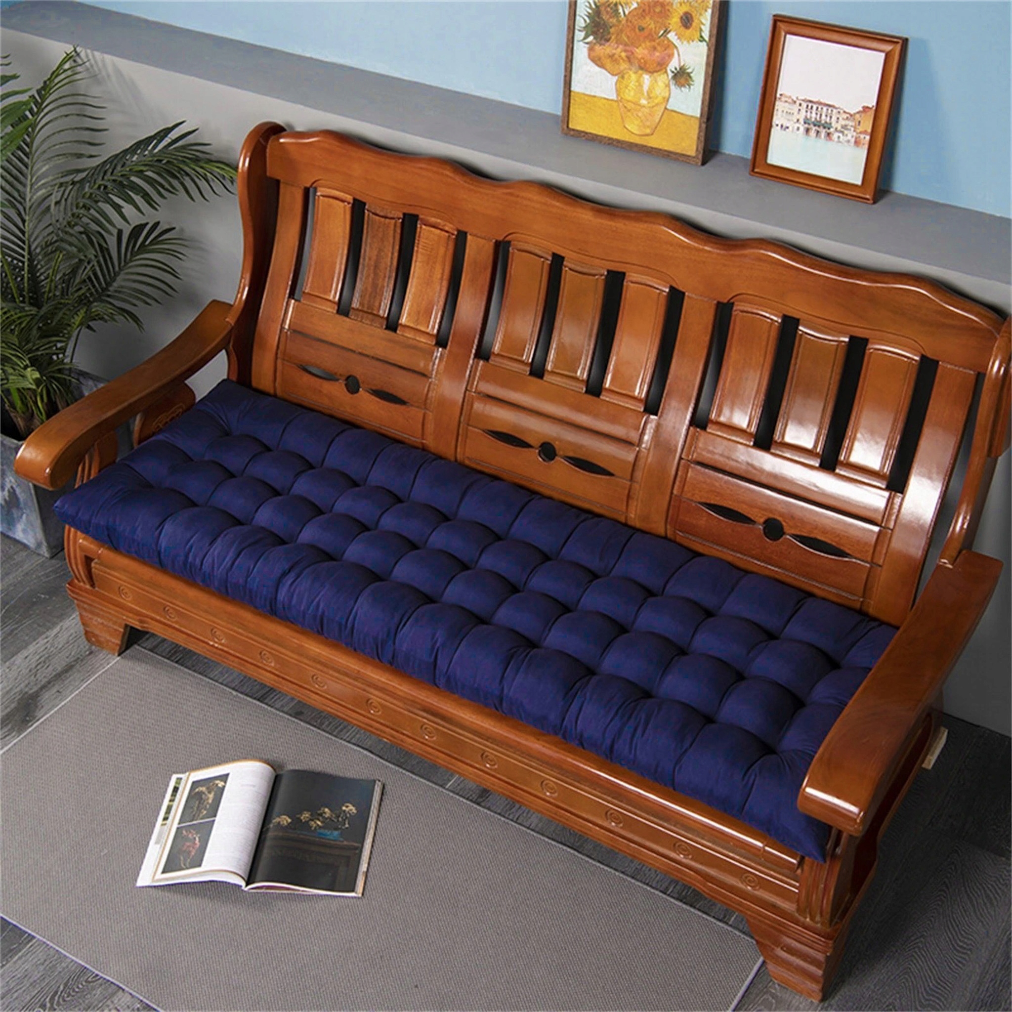 БОЛЬШАЯ ПОДУШКА ДЛЯ СТУЛА, САДОВЫЙ СТУЛ, КАЧЕЛИ, СТЕГАНАЯ СКАМЬЯ, БОЛЬШАЯ 155x60 ТЕМНО-СИНИЙ