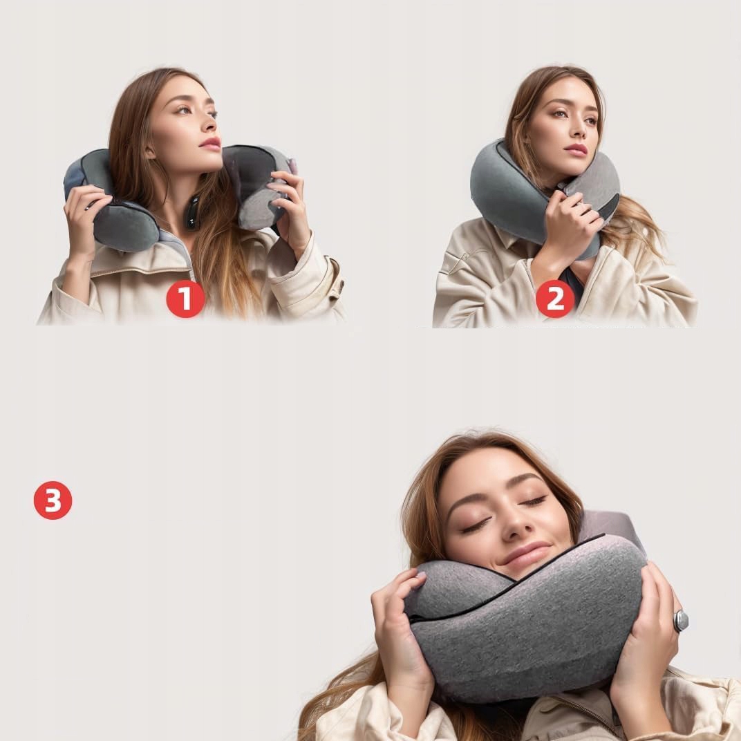 ✨ Поддержка шеи на 360°: Эта подушка для путешествий имеет эргономичную конструкцию, обеспечивающую всестороннюю поддержку и снимающую давление. Изгиб повторяет форму шеи, головы, щек и подбородка, что делает ваше путешествие более комфортным.