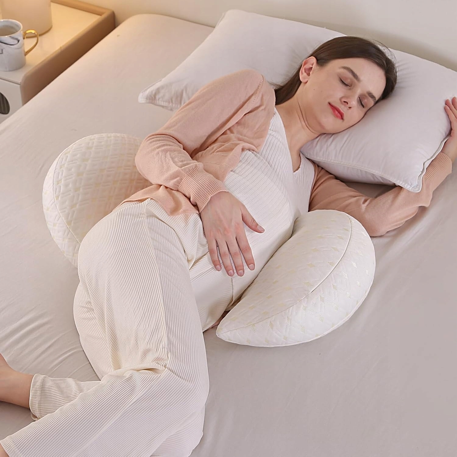 Обеспечьте комфорт и спокойный сон во время беременности с нашей подушкой для беременных с двойным клином, предназначенной для женщин, ожидающих ребенка. Это отличная поддержка для спины, живота, бедер и ног!
