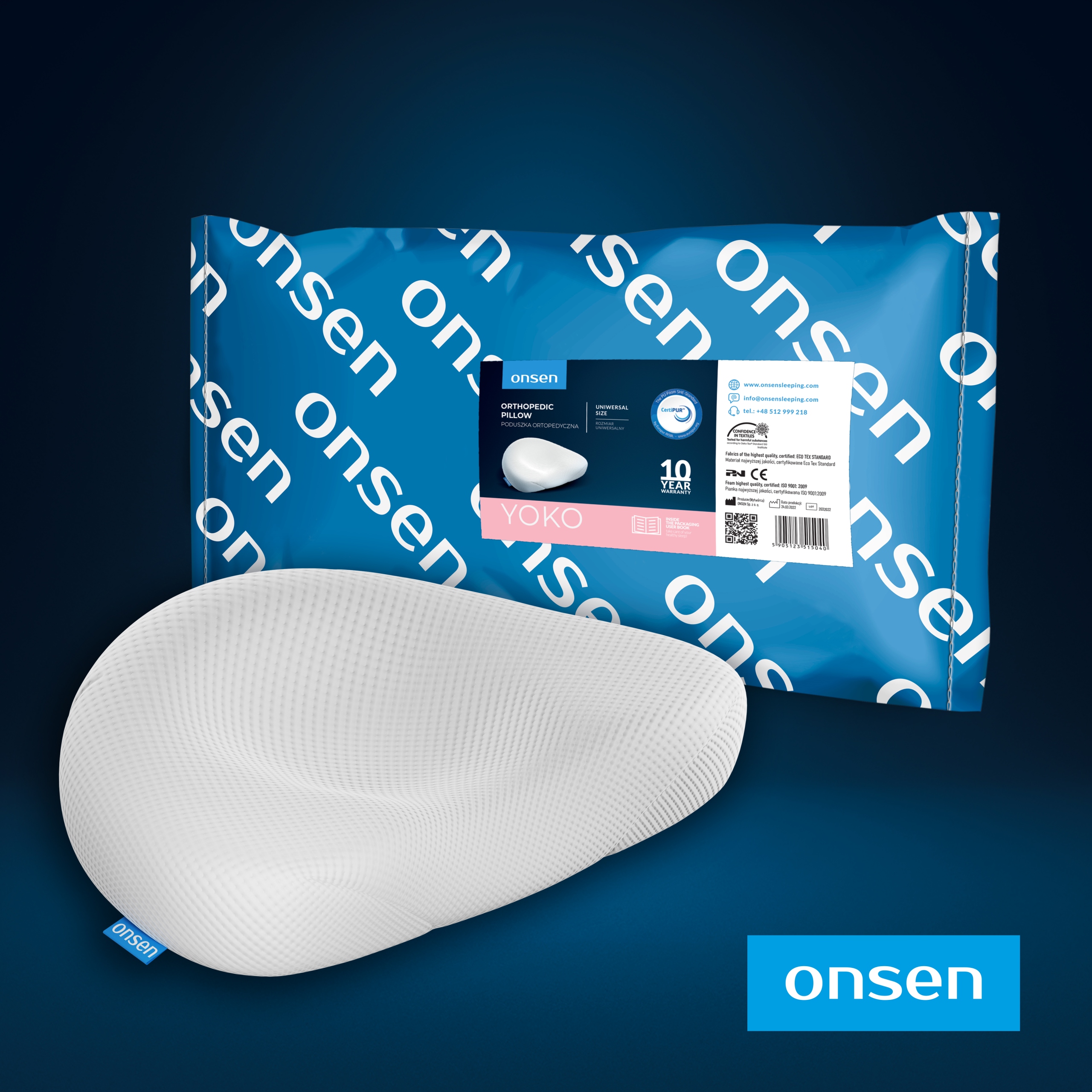 Использование ортопедической подушки Onsen® позволяет свободно изменять положение сна b>, которое он обязан вдумчивому проекту. Его конструкция позволяет оставить позвоночник в физиологическом положении всю ночь, как во время сна, так и при спине на спине. Ортопедическая подушка Йоко, как и любые другие подушки, не должна использоваться при сне на желудке. с рядом проведенных тестов. Прежде чем принять решение о продаже данной модели ортопедической подушки , мы проверили много версий их прототипов, выбрав лучшие. ® Ортопедические подушки от Onsen® b> они необычны по сравнению с подушками других производителей. В то же время они согласуются с анатомией человеческого тела , гарантируя поддержку и удобство. Это вызывает, что они являются уникальным решением для профилактики позвоночника, а также для лечения отмены лордоза , а также других заболеваний позвоночника. Многие из наших клиентов подтверждают, что они отлично работают как подушки для дископатии или грыжи позвоночника, поддерживая процесс лечения и реабилитации. > Это соответствует потребностям и решать проблемы, которые люди спят на неудобных подушках или даже неподходящих матрасах. Его использование оказывает положительное влияние на биопсихосоциальную функцию каждого пользователя
