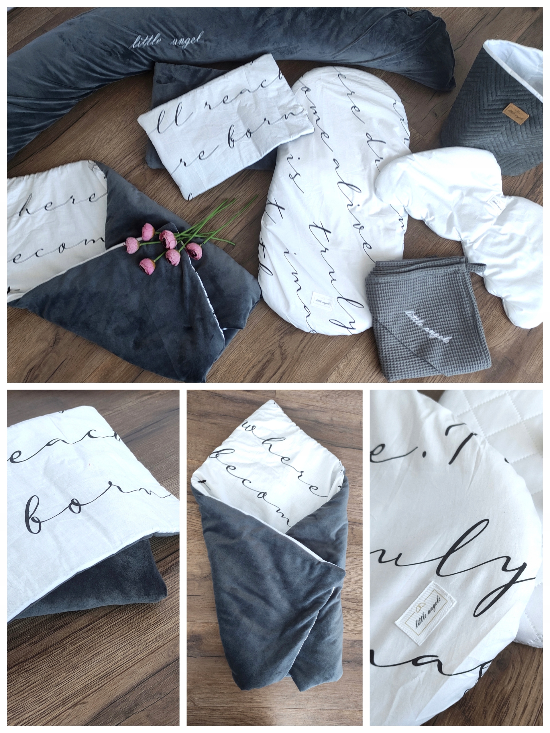 Подушка для беременных + две наволочки - хлопок с надписями + серый бархат