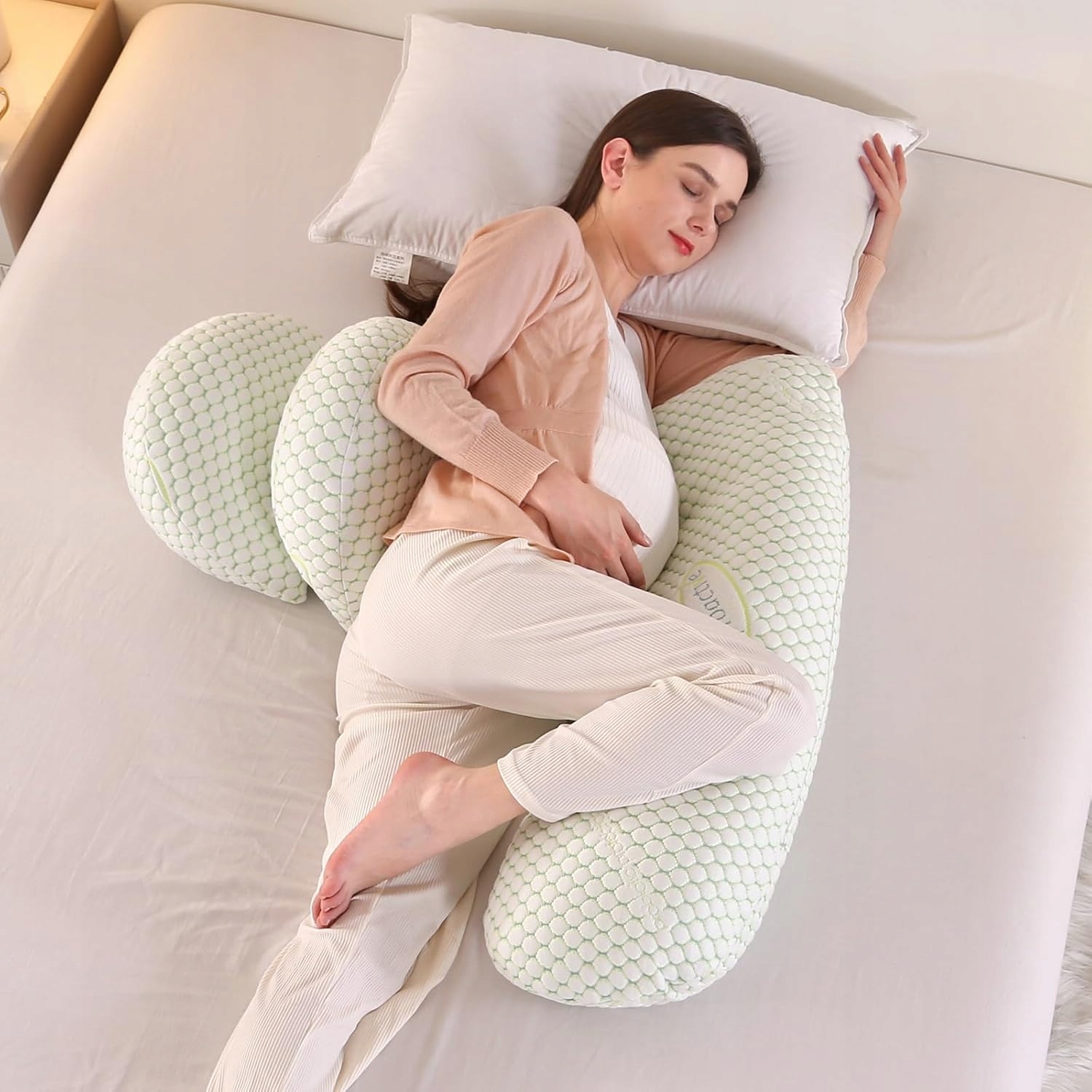Удлинитель также можно использовать отдельно в качестве подушки для всего тела. Это универсальный и удобный выбор для беременных женщин и всех, кто ищет высококачественную поддержку сна.