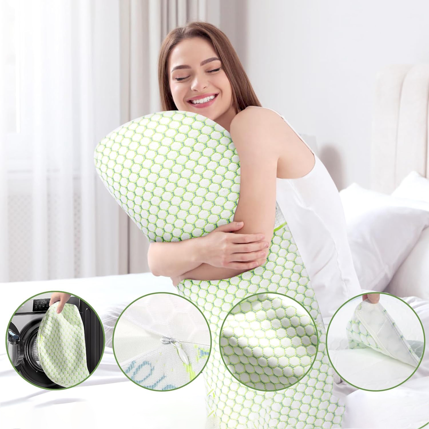 Наша подушка для беременных создана для максимального комфорта. Он имеет уникальную охлаждающую крышку из пробиотического материала. Этот ультрамягкий освежающий чехол идеально подходит для беременных женщин, поскольку он отводит тепло и создает ощущение прохлады, способствующей спокойному сну.