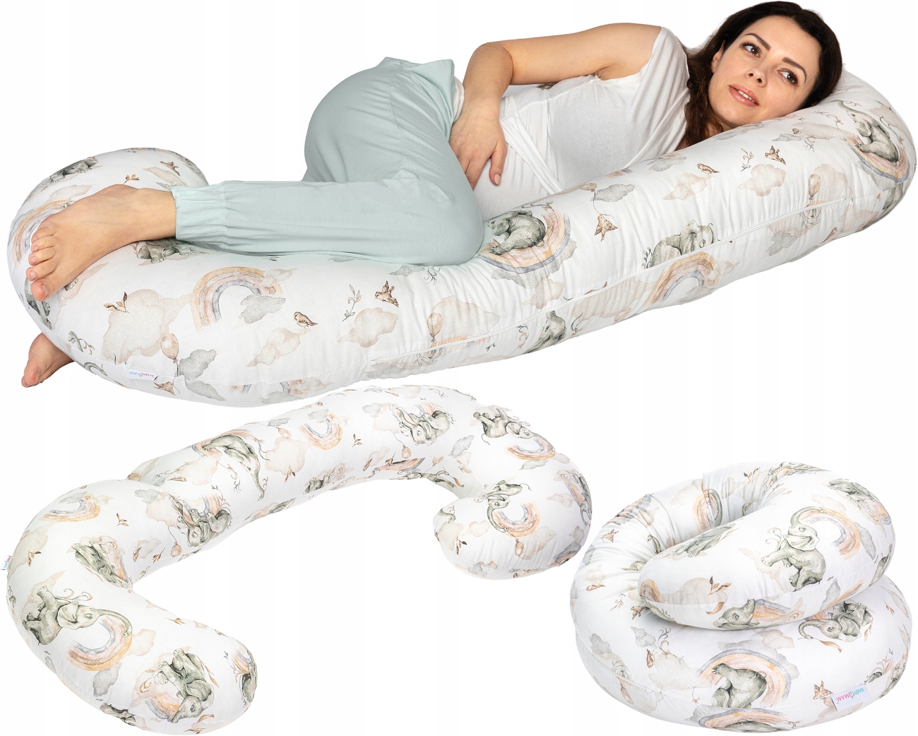 Большой размер подушки (длина 300 см) позволяет матери во время беременности комфортно отдыхать в течение дня и расслабляться, поддерживая все тело тело. Во время сна большая подушка помогает найти удобное положение, способствующее здоровому сну. Разгружая спину, плечи и шею женщины, снимает усилия и облегчает сон. Размещение ее между коленями облегчает разгрузку тазобедренного сустава.