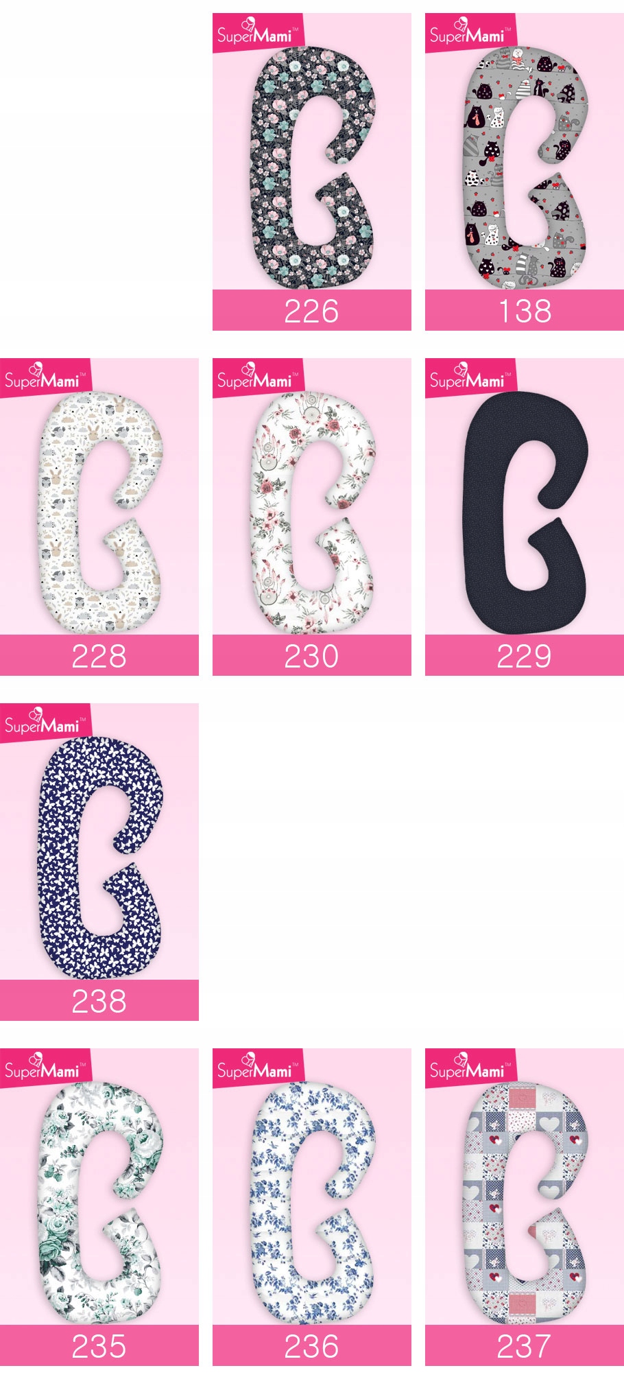 Размеры подушки для беременных Supermami «C» оптимально подобраны, чтобы обеспечить комфорт каждой беременной женщине. Большие размеры подушек, доступных на рынке, означают, что их базовая функциональность ухудшается (отсутствие адекватной поддержки спины) в пользу увеличения пространства для детского манежа. Основная функция подушки для беременных заключается в предотвращении заболеваний, связанных с неправильным положением во время сна, путем правильного положения тела, т. е. приподнятия ноги, что улучшает кровоснабжение плода, и поднятия головы, что выравнивает позвоночник с поясничным отделом и таз. Поэтому поддержать спину широкими подушками очень сложно.