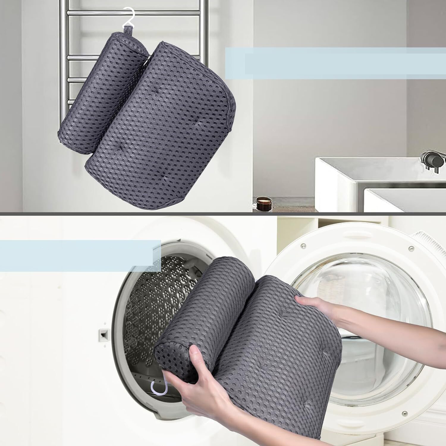 Подушку можно стирать в холодной воде. Только сушить на воздухе, не гладить. Подушка для ванны оснащена крючком, на который ее можно повесить на вешалку для полотенец или халат в ванне или душе для быстрого и легкого высыхания на воздухе. Его легко чистить, он пропускает воздух и влагу и очень быстро сохнет, предотвращая появление неприятных запахов, плесени или бактериального заражения.