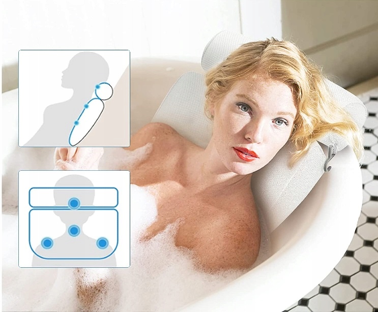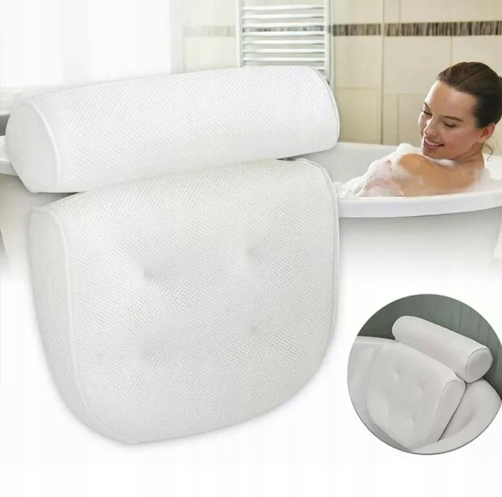 Подушка имеет характерную форму, позволяющую комфортно лежать во время купания в ванне.