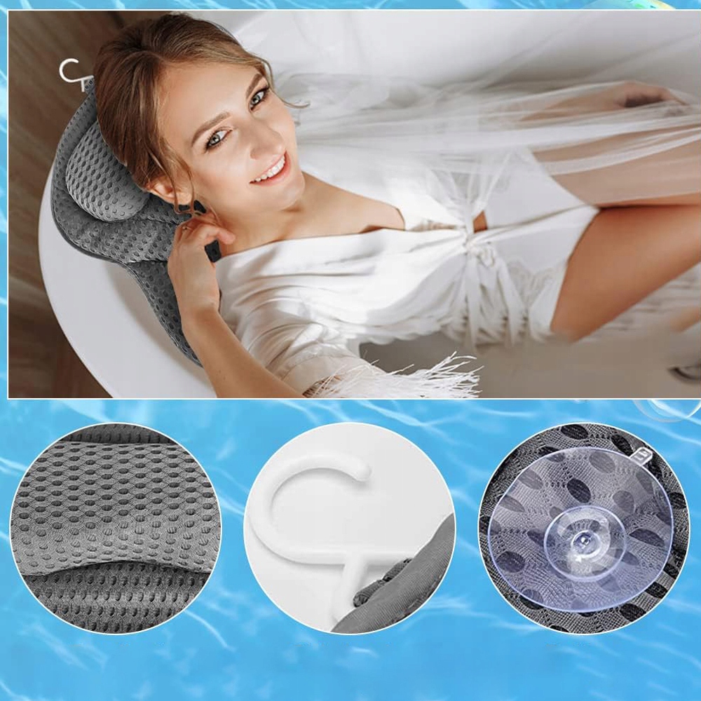 - 💧 - 【с крючками и сильными всасывающими чашками】: Подушка для купания содержит 6 всасывающих чашек, которые могут создавать всасывание на гладких поверхностях, чтобы вы могли прикрепить ее к ванне. Крюк для ванны можно повесить на вешалку для полотенец или вешалку для ванной комнаты или в душе. Роскошные аксессуары для ванной комнаты могут быть вымыты в стиральной машине и очень практичны.