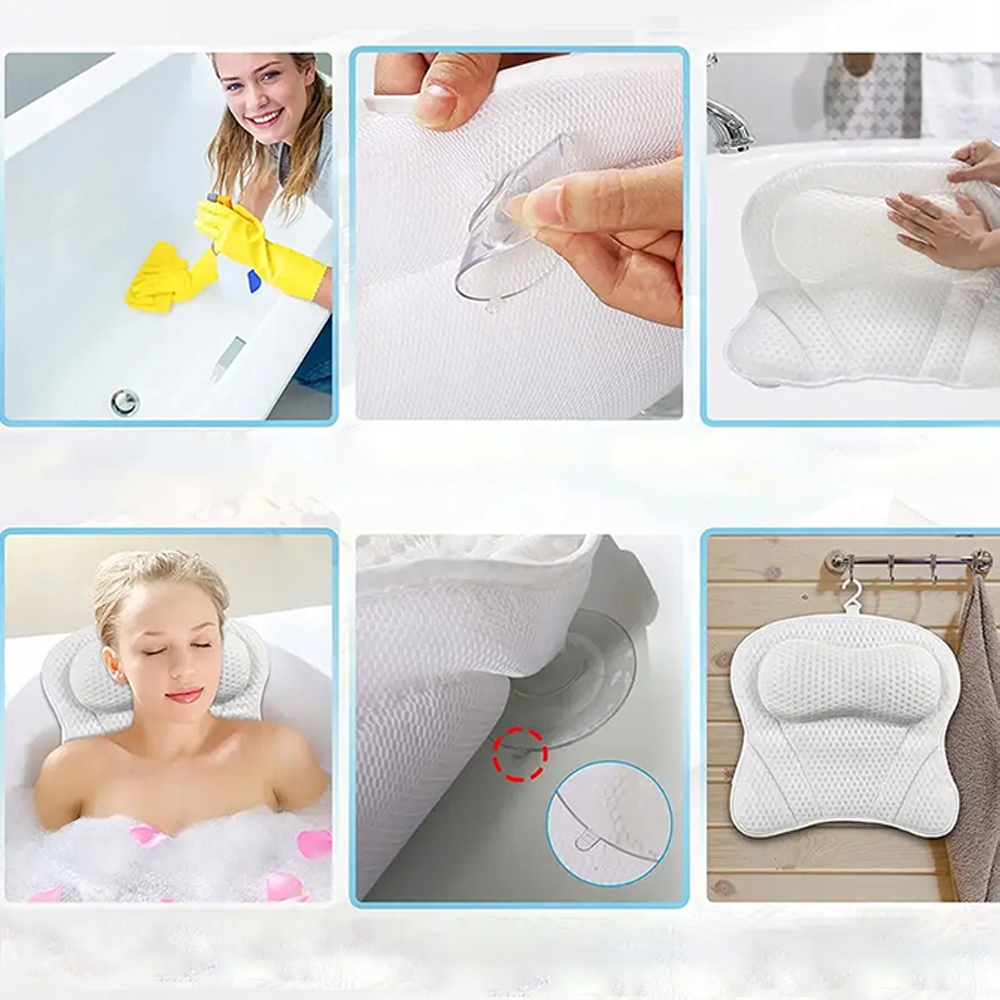 ПОДУШКА ДЛЯ ВАННЫ 4D AIR MESH - 6 ПРИСОСОК - ПОДДЕРЖКА ГОЛОВЫ И ШЕИ