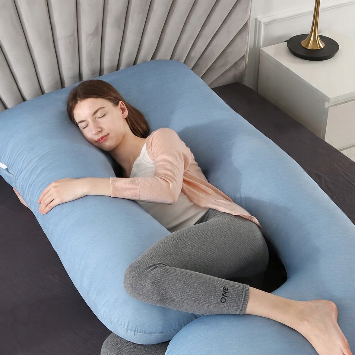 Наполнителем подушки для беременных является высококачественное гипоаллергенное полое волокно 7D, которое обеспечивает комфорт, хорошую упругость и эластичность, сохраняет форму и объем. продукт. Кроме того, он обладает сильным поглощением влаги и воздухопроницаемостью, его нелегко намокнуть и размножить бактерии. Внешняя оболочка изготовлена из моющегося ледяного шелка с высококачественной двойной строчкой. Их идеальное сочетание придает подушке отличные свойства восстановления эластичности и более продолжительное использование.