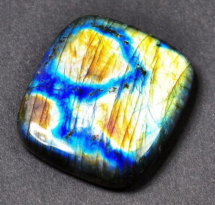 Образец лабрадора — природного камня формы кабошон для изготовления оригинальных украшений.