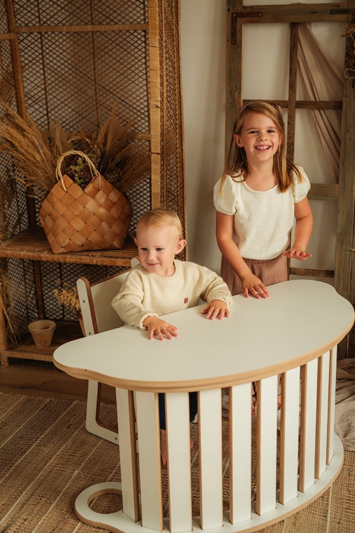 Столешница ставится на качалку, образуя стол для ребенка. Столешница помещается в ручки-качалки, повернутые вбок.
