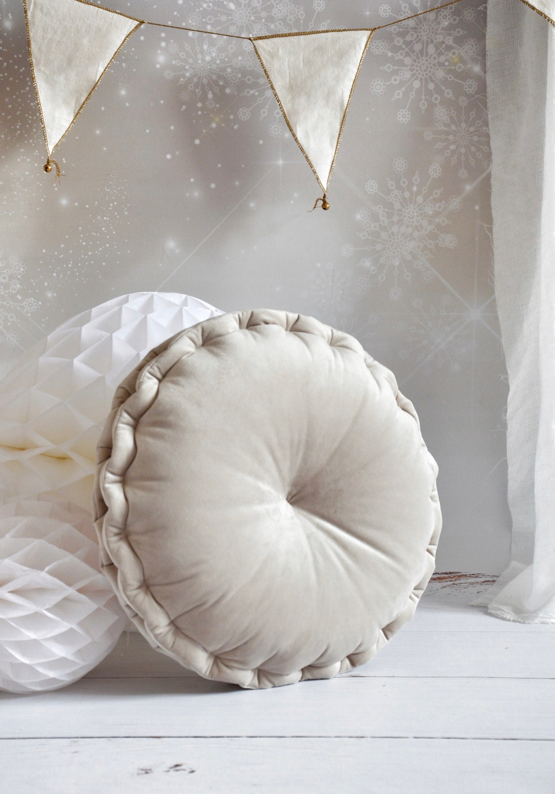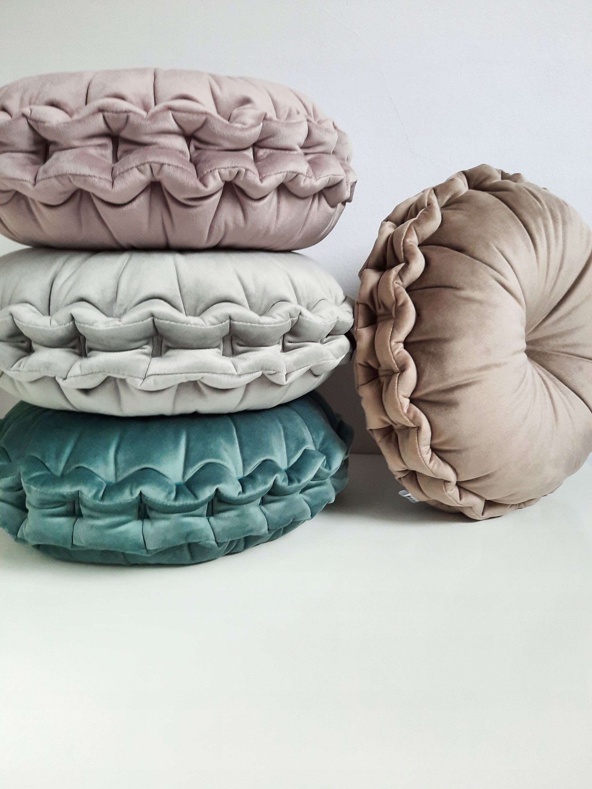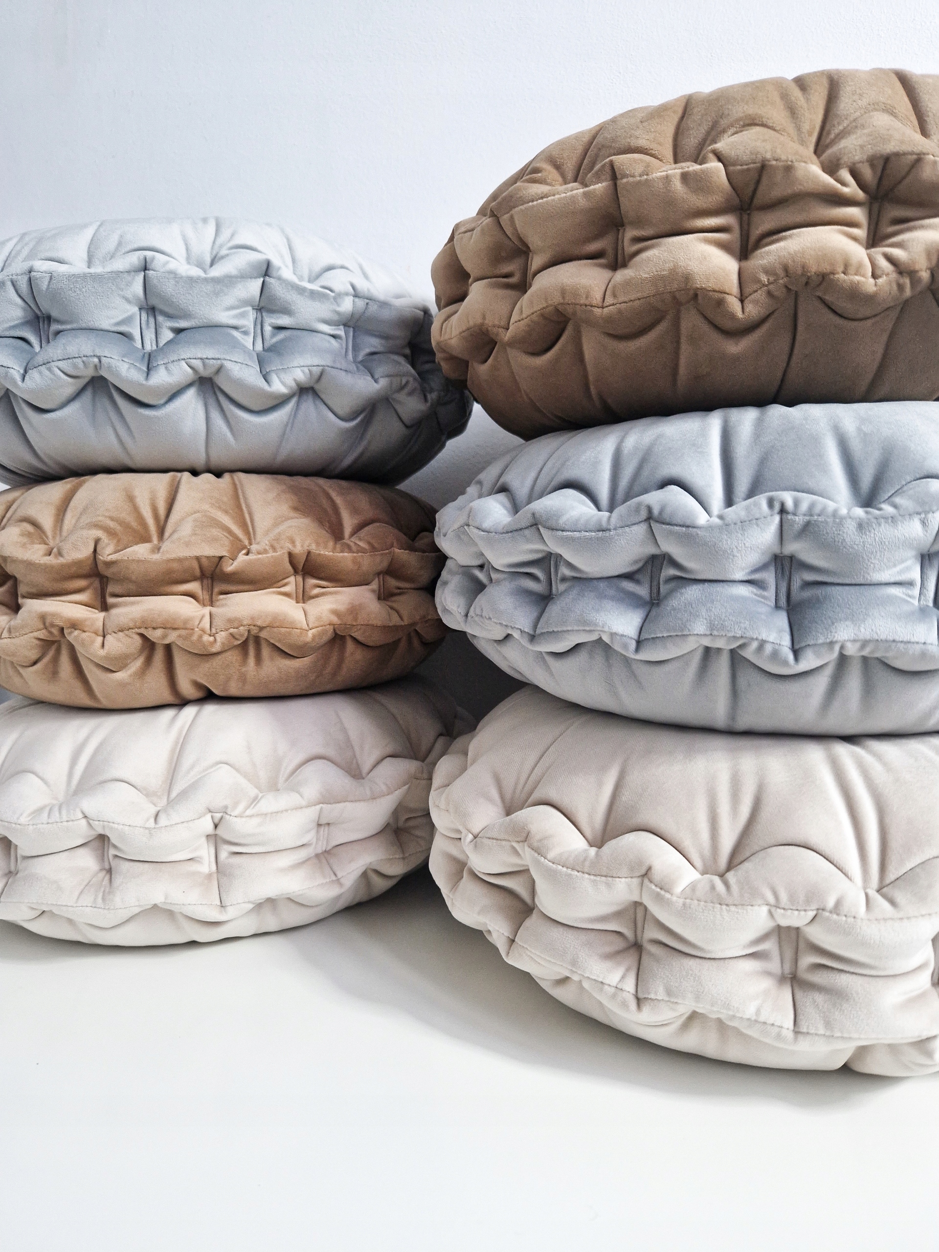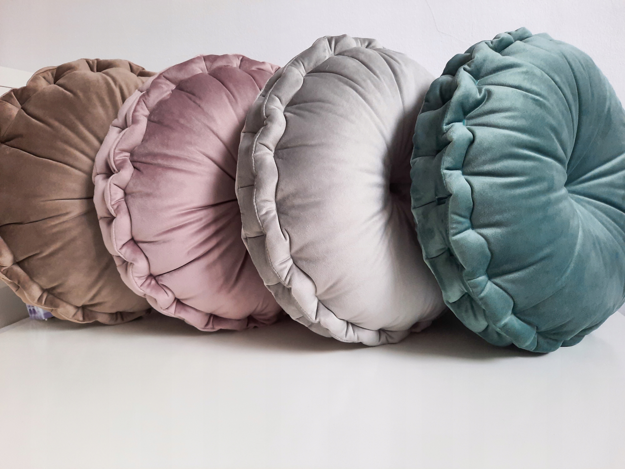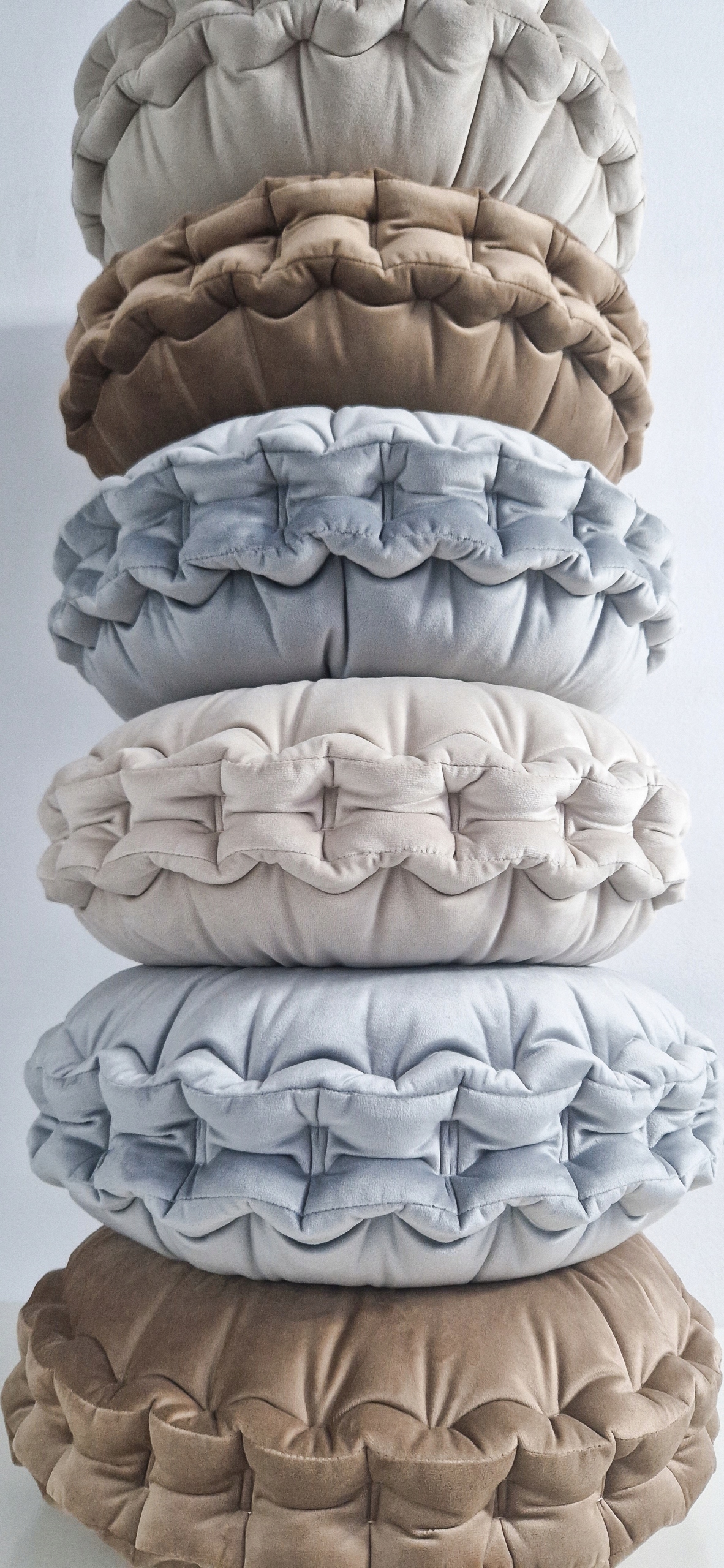 КРУГЛАЯ ФРАНЦУЗСКАЯ СТЕГАНАЯ ВЕЛЮРОВАЯ ПОДУШКА, 40 СМ