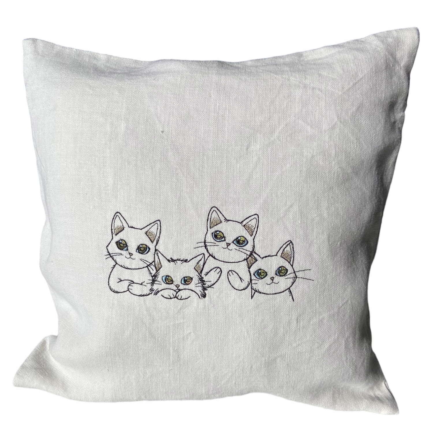 ПОДУШКА ЛЬНЯНА 40х40 см з ВИШИВКОЮ КОТ + ВСТАВКА БЕЗКОШТОВНО