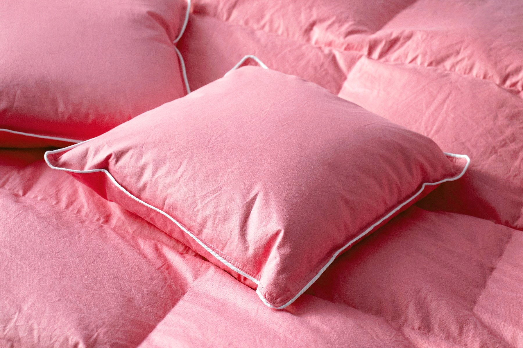 - Перья и пух, используемые для производства подушки, предварительно сортируются, обеспыливаются, промываются в бактерицидных и антистатических средствах и сушатся при высокой температуре, что уничтожает все микроорганизмы.