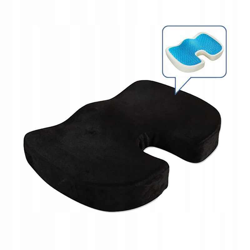 Подушка состоит из белой пены, «запоминающей» форму ягодиц.Голубой гель охлаждает и рассеивает тепло, устраняя усталость. Вся подушка покрыта ЧЕРНЫМ велюровым чехлом.