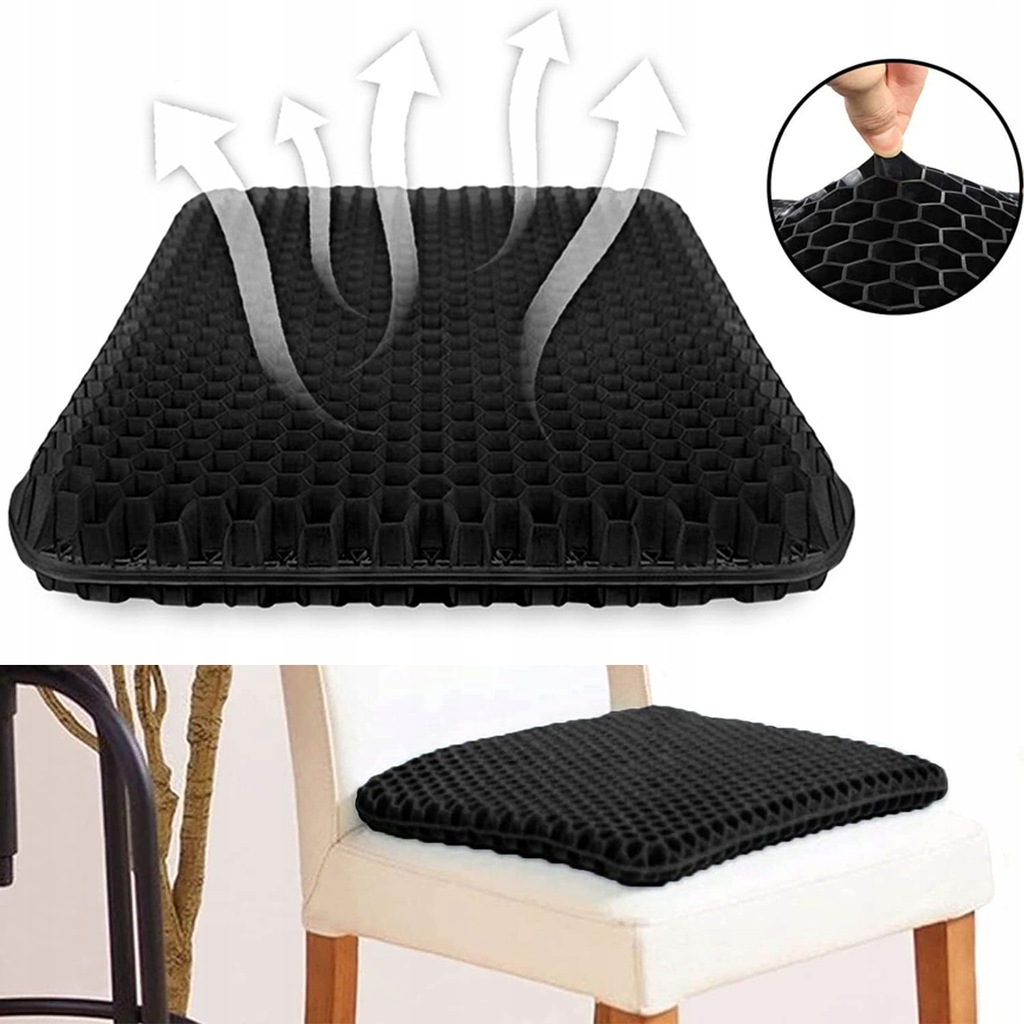 👍УДОБНО И ДЫХАТЕЛЬНО Эта гелевая подушка для сиденья имеет трехмерный сотовый узор. Она может значительно улучшить циркуляцию воздуха, сохраняя пол прохладным, делая ваше сиденье более комфортным.