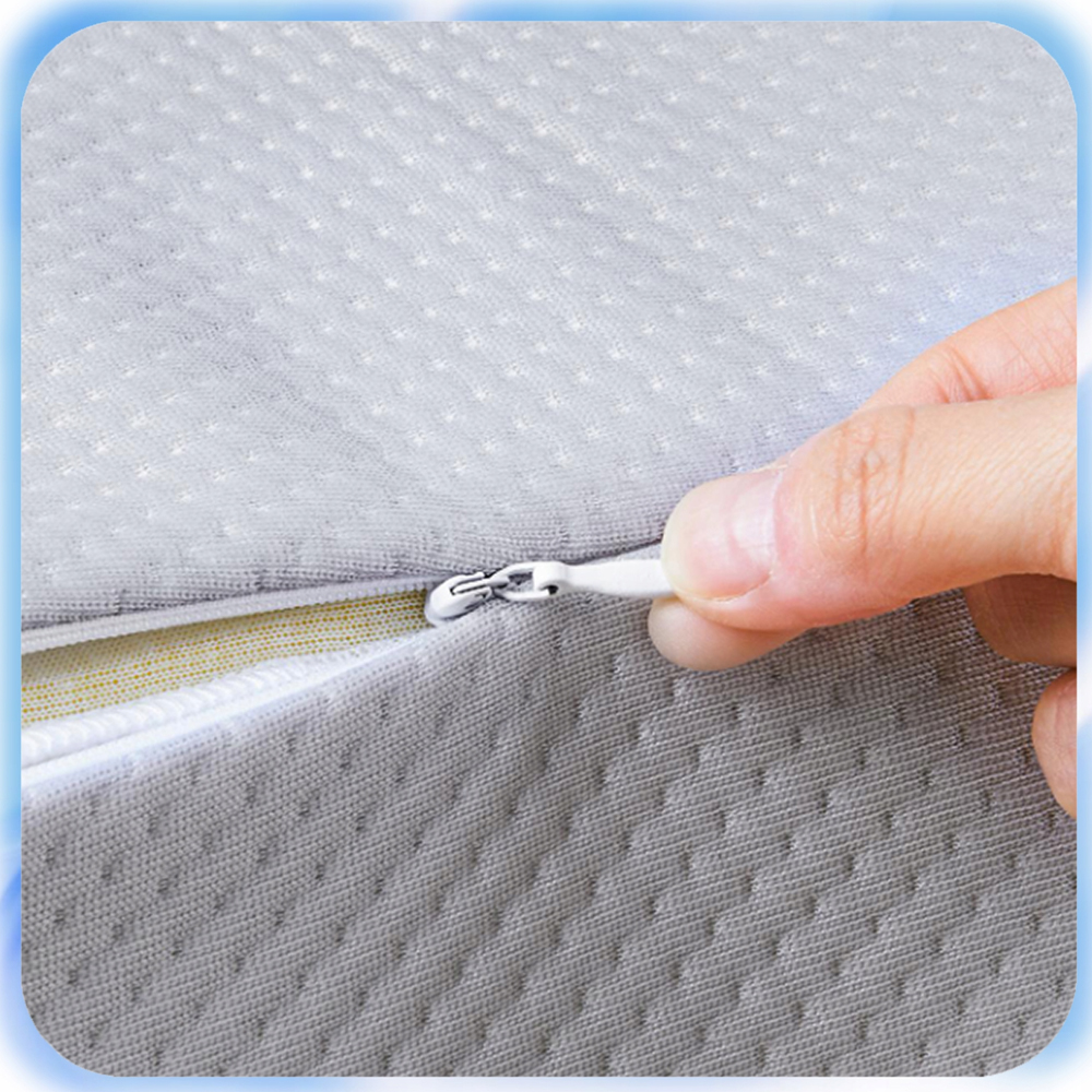 Подушка для бокового сна имеет двухслойную высококачественную наволочку, которая мягкая, хорошо расширяется и сжимается вместе с сердцевиной подушки. Он съемный, имеет молнию и его можно стирать в машине. Наволочка изготовлена из хлопка и полиэстера и идеально прилегает к коже.