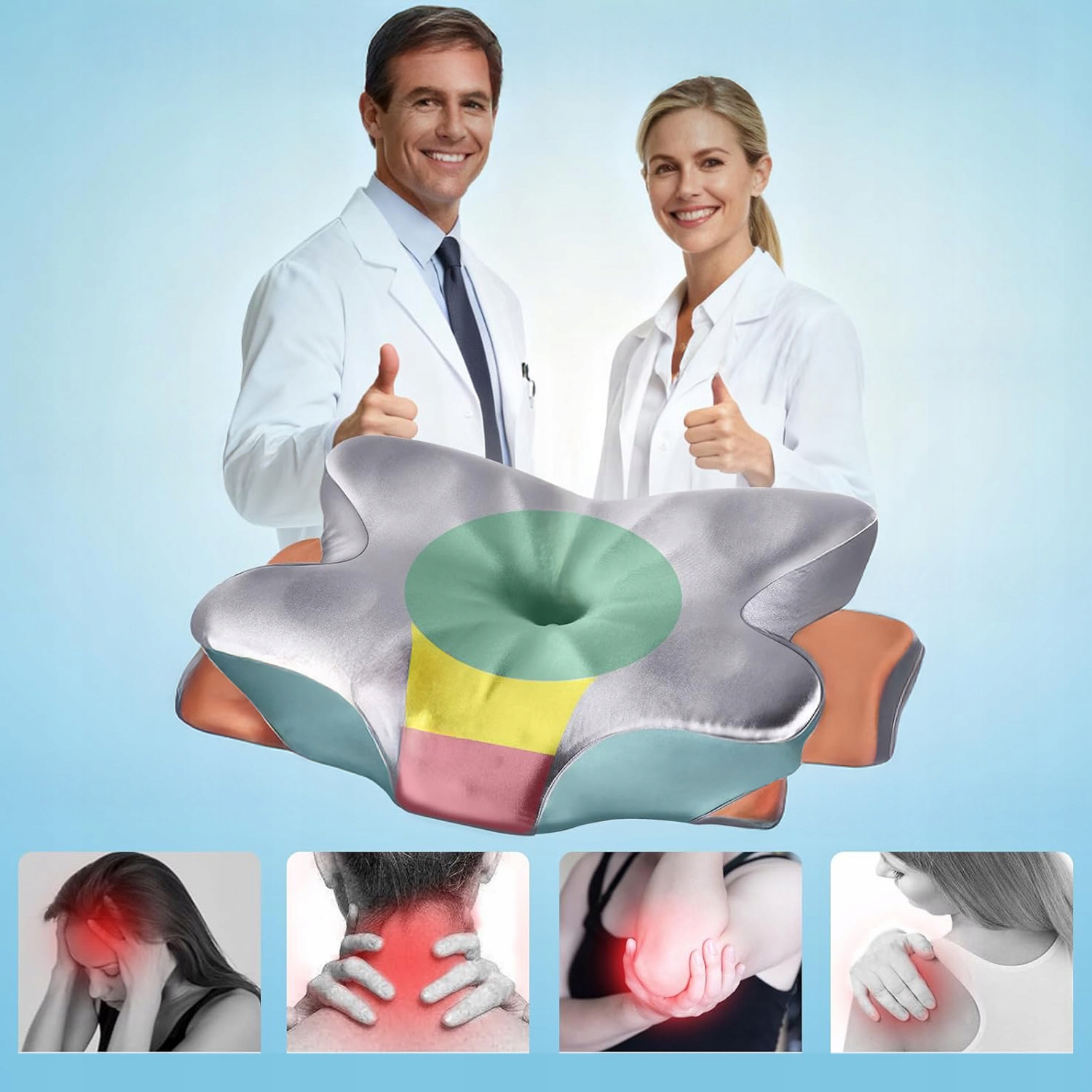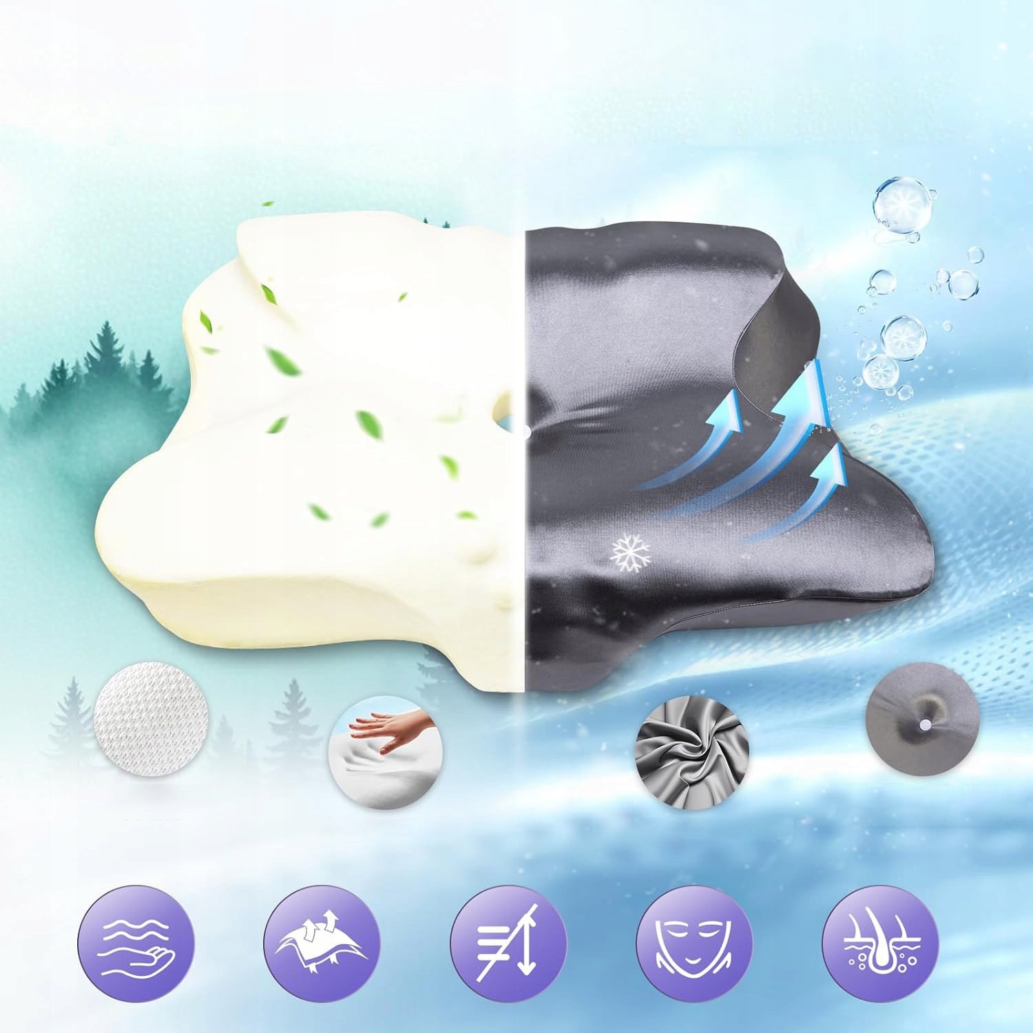 💤Дизайн зон: мягкая секция для щек сводит к минимуму точки давления, более твердая задняя часть шеи помогает поддерживать естественное положение головы, а по бокам имеются канавки для удобной поддержки рук.